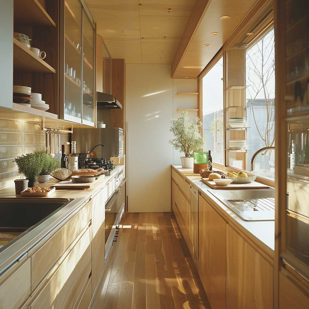 This approach to short kitchen design is not just about aesthetic appeal; it’s a reflection of a lifestyle choice that values efficiency and simplicity. By integrating multifunctional elements, the kitchen remains a place of culinary creativity without sacrificing its minimalist charm.