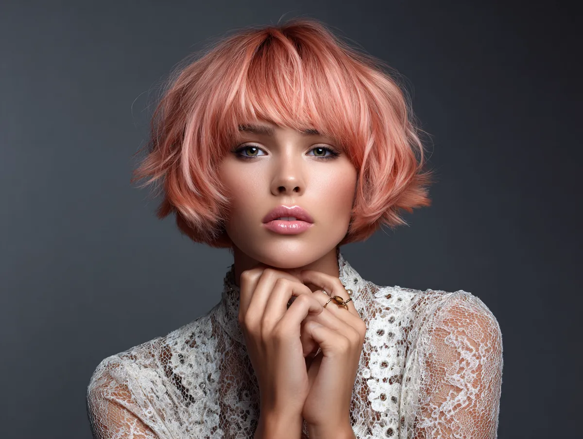 Coral peach infuses warmth and radiance into the choppy bob, making it an ideal pairing for the angular elegance of a diamond face. This variation focuses on tapered layers that gradually descend along the face, curving in a way that softens the jawline and highlights the natural cheekbone architecture. The warmth of the coral tone adds glow, drawing attention away from the narrow chin and creating a soft halo effect.