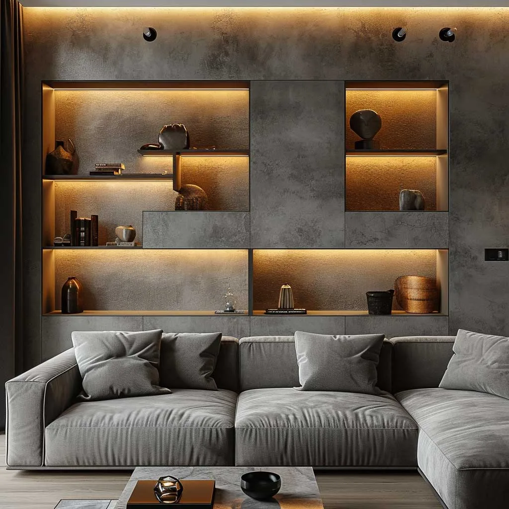 Sleek Shelves and Lighting for Sofa Back Wall Elegance