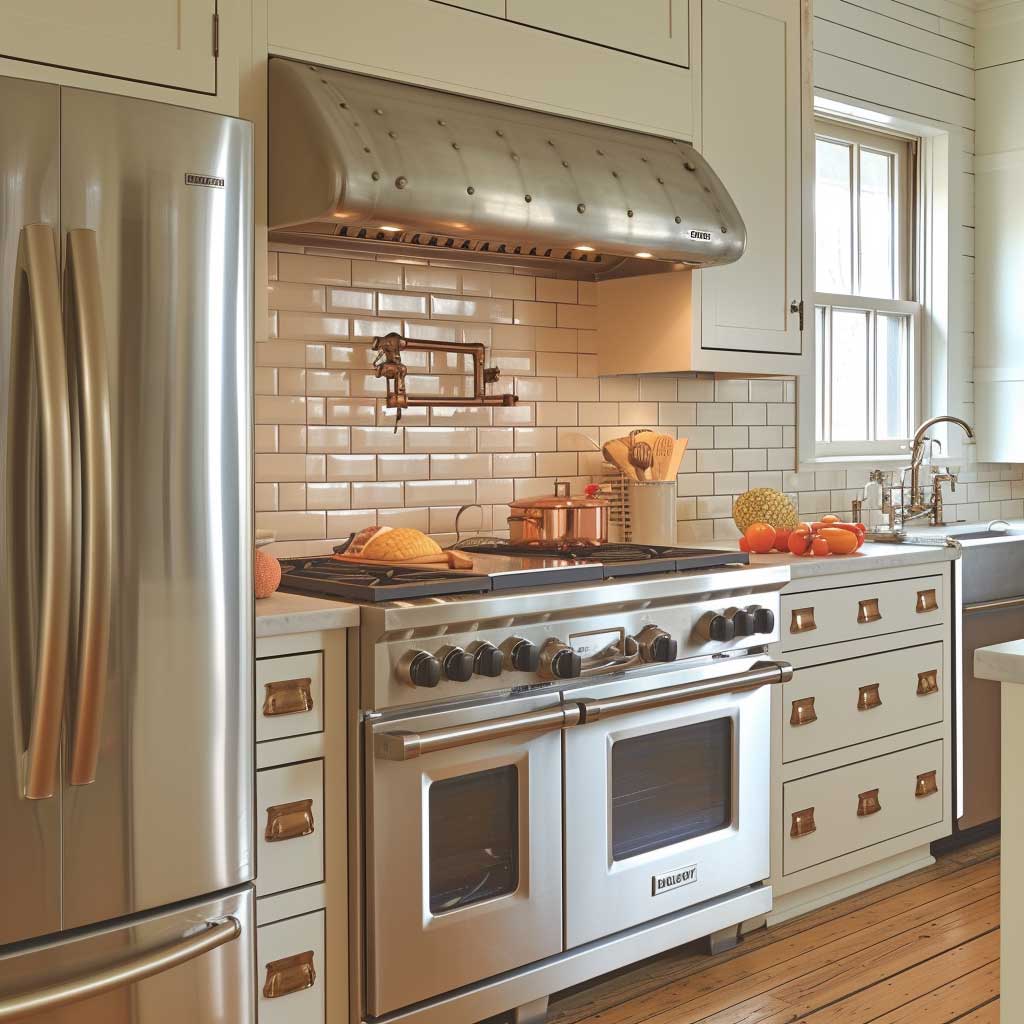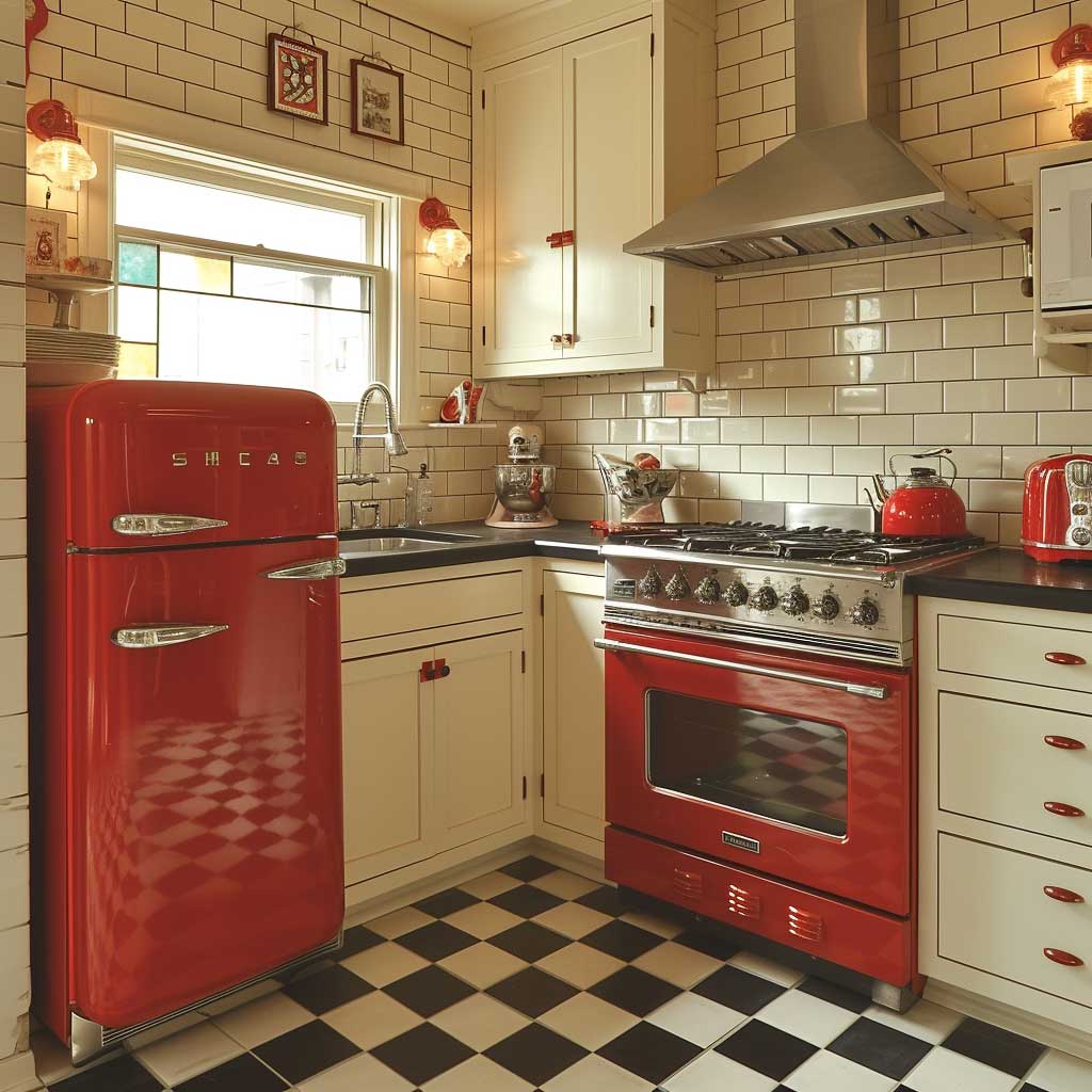 The key to successful vintage fusion lies in balance. It’s about integrating vintage elements in a way that complements, rather than overpowers, the modern aspects of the kitchen. For instance, retro-inspired appliances – such as a classic refrigerator or a range cooker with an old-world design – can serve as focal points in the kitchen. These pieces not only add character but also serve as a bridge between the old and the new.