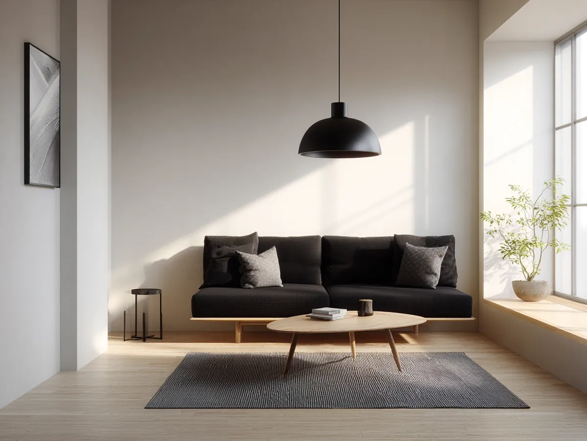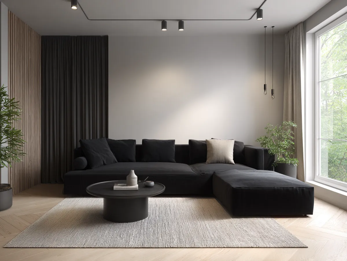 1. Modern Minimalism with Black Sofa Elegance