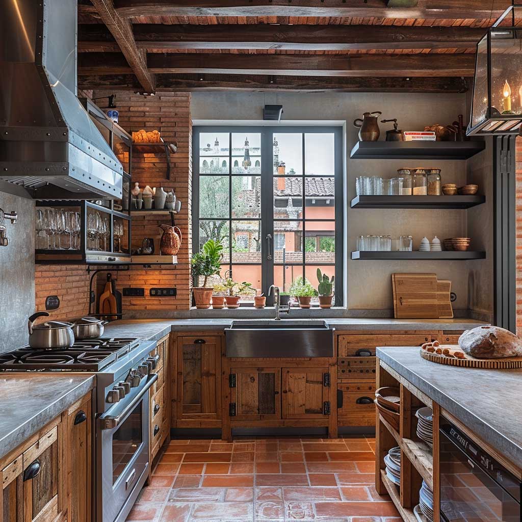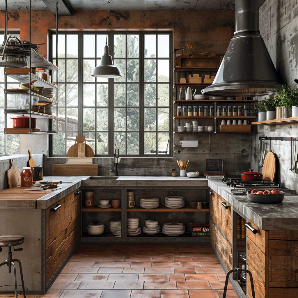 This style of kitchen is perfect for those who appreciate a design that balances industrial toughness with homely comfort. The incorporation of various textures and materials creates a layered look that is visually appealing and highly functional. These kitchens are not just places to cook but are vibrant areas of the home where design and utility are seamlessly integrated, making them a perfect embodiment of stylish functionality in modern home design.