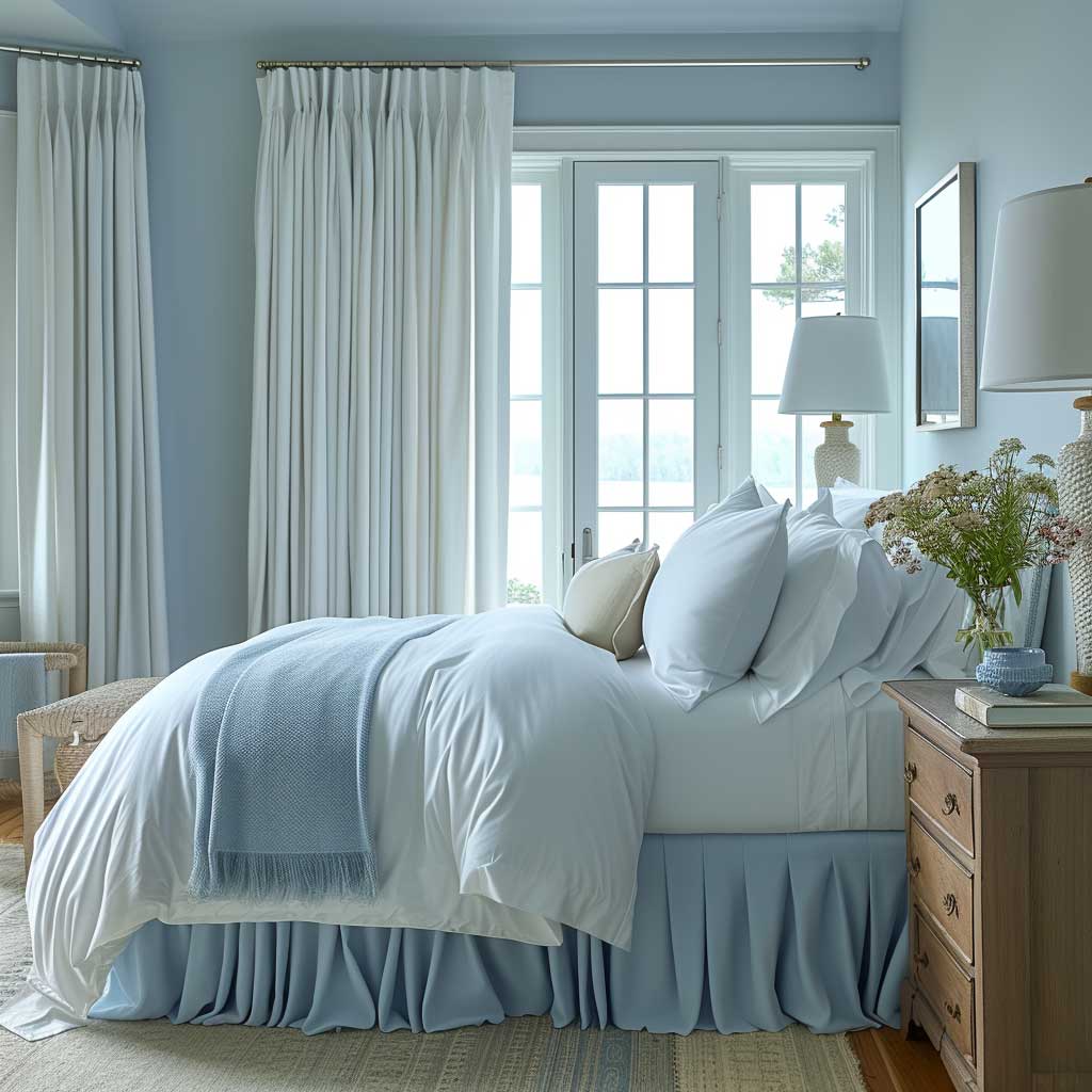 Choosing tranquil blues for bedroom draperies is a way to embrace the restorative qualities of color in creating a peaceful retreat. This choice reflects a desire for a space that promotes relaxation and well-being, making the bedroom not just a place to sleep but a sanctuary for restorative rest. The gentle hues of blue, with their soothing effect on the mind and body, make them an ideal choice for anyone looking to transform their bedroom into a tranquil haven.
