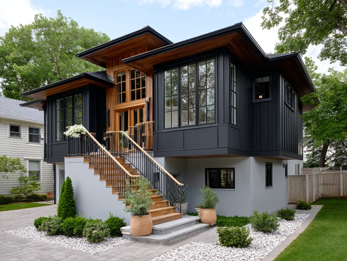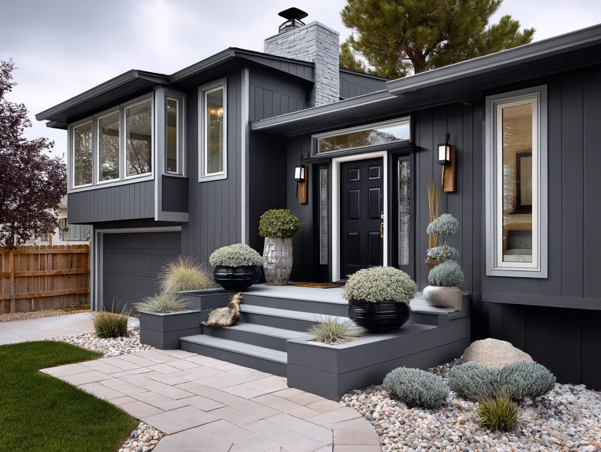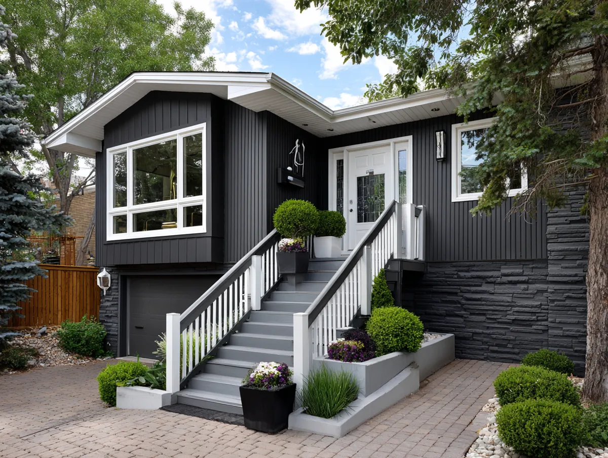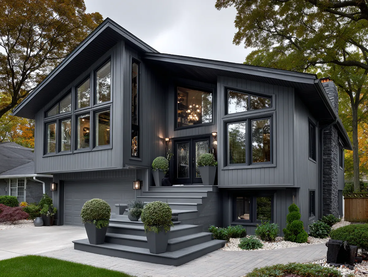 Split Level Siding Ideas with a Modern Monochrome Color Scheme