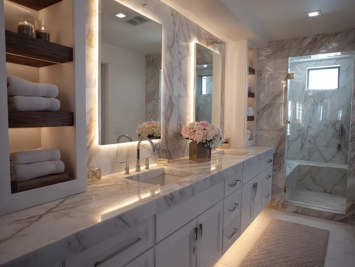 Yes — luxury isn’t only about big budgets, it’s about smart choices. Strategic upgrades like high-end finishes, thoughtful lighting, and a strong material contrast can give your bathroom a spa-like feel without overhauling the entire layout. It’s about elevating the experience with a few impactful changes rather than renovating every square inch.