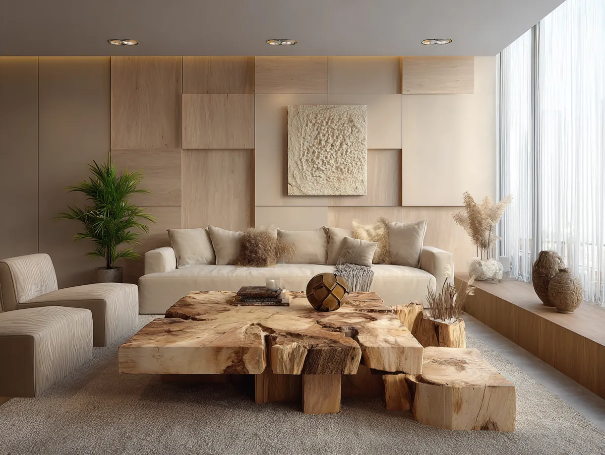 Among the plethora of beige living room ideas, the concept of “Beige Layered with Woods” holds a special place. It’s a design idea that brings warmth, texture, and depth to the living space, creating an ambiance that is both cozy and sophisticated.