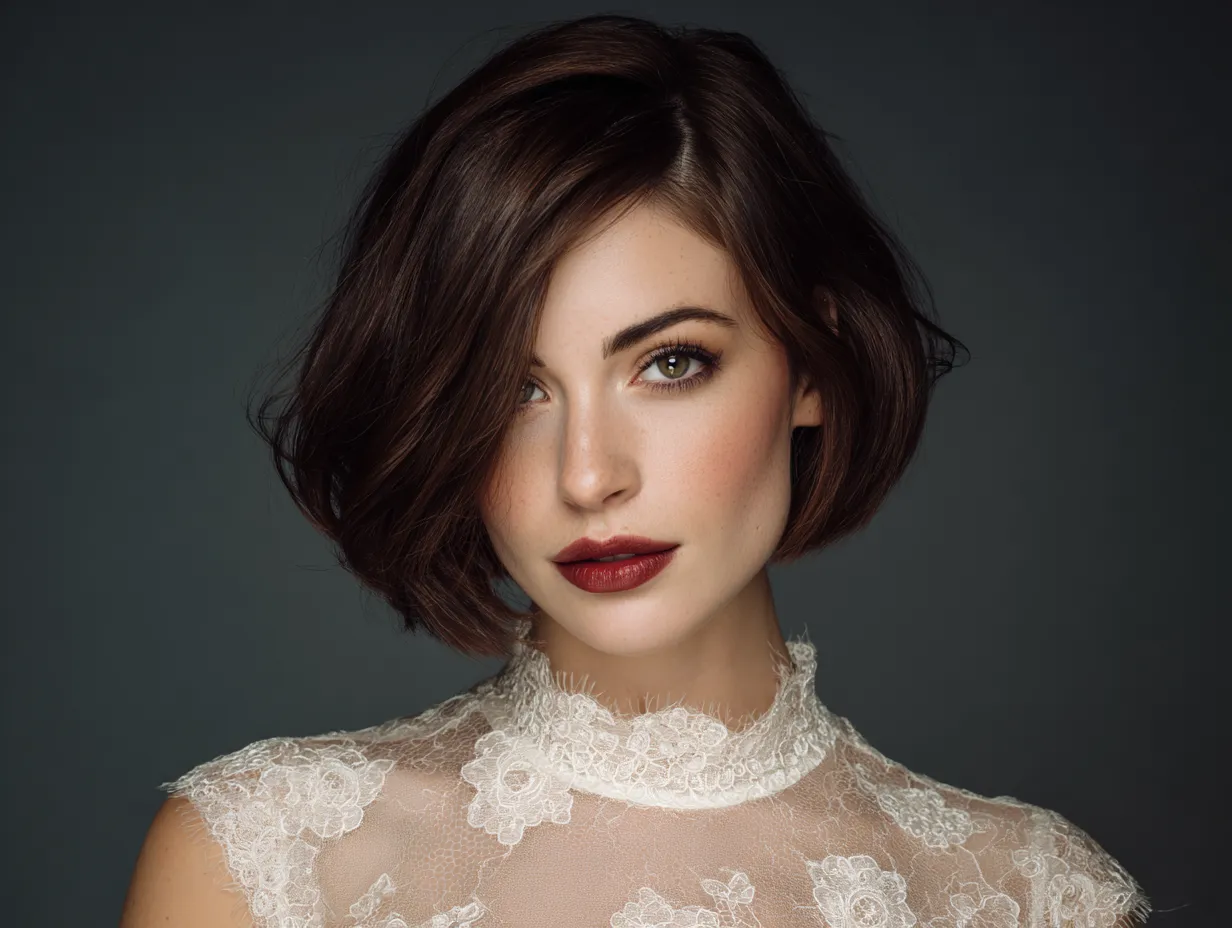 Below are three inspiring photo titles, each representing a distinct approach to styling a chin length bob for weddings. Each look is paired with a detailed visual prompt for Midjourney, allowing creative visualization, and is followed by a deep dive into how and why the style works so well. These styles, while different in mood and setting, all embody timeless charm and modern grace.