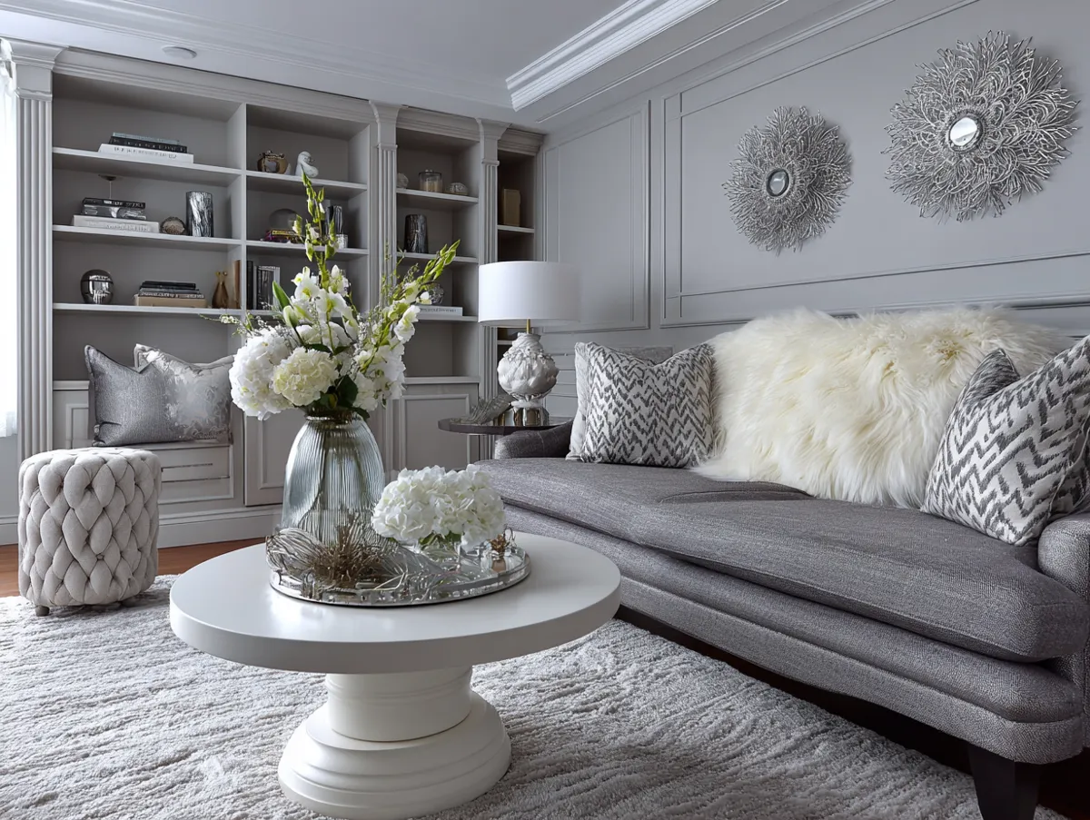 But bold accents aren’t limited to just colors. They can be patterns, textures, or even architectural features. A grey and white living room with a striking black and white geometric rug can make a statement. Similarly, a bold, ornate chandelier in a minimalist grey and white space can become a focal point, adding a touch of opulence.