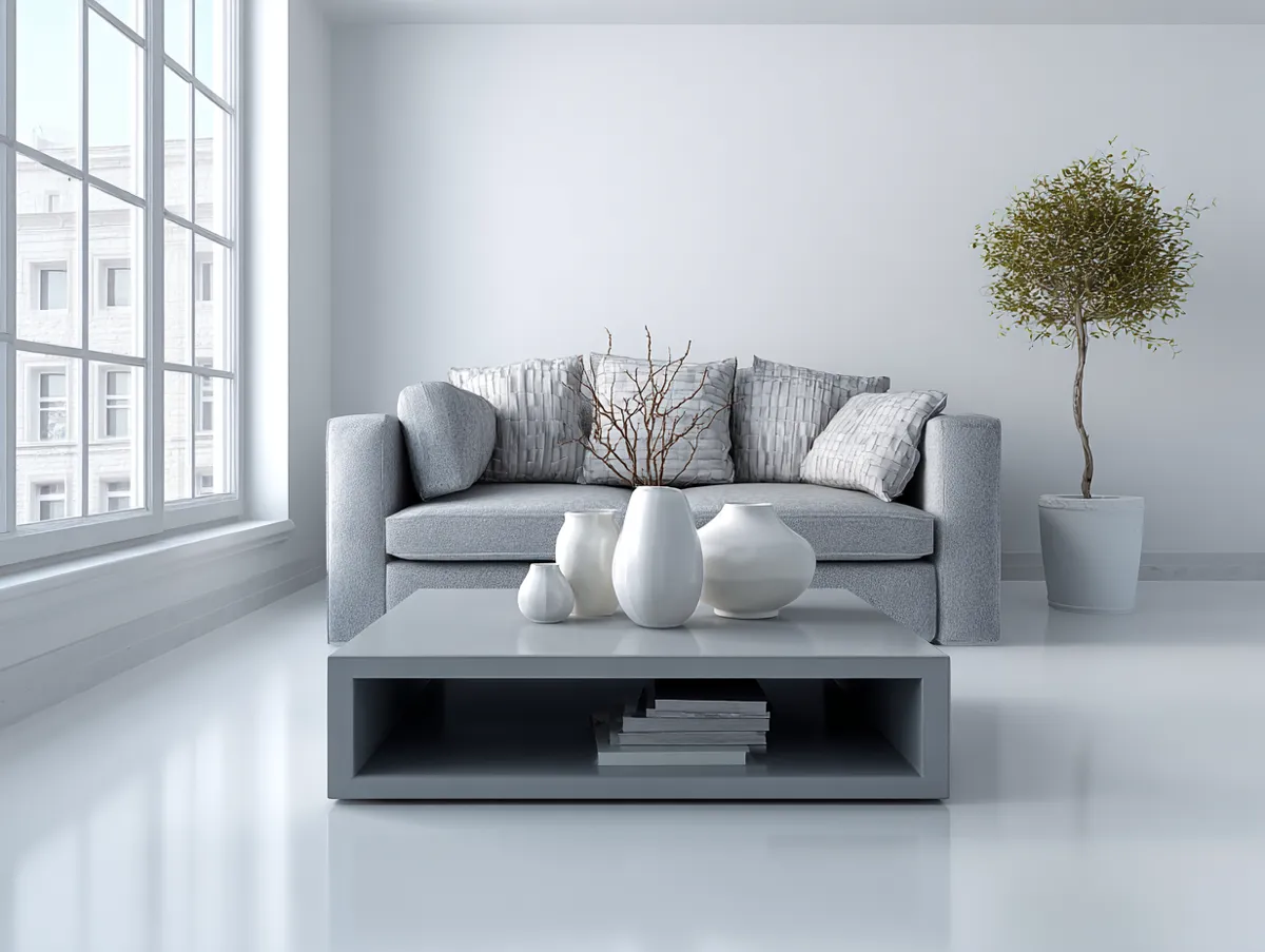 Modern minimalism is all about simplicity, functionality, and clarity. It shuns unnecessary clutter, focusing instead on essential items that serve a purpose. In a grey and white living room, this design philosophy translates to clean lines, unobtrusive furniture, and a sense of spaciousness.