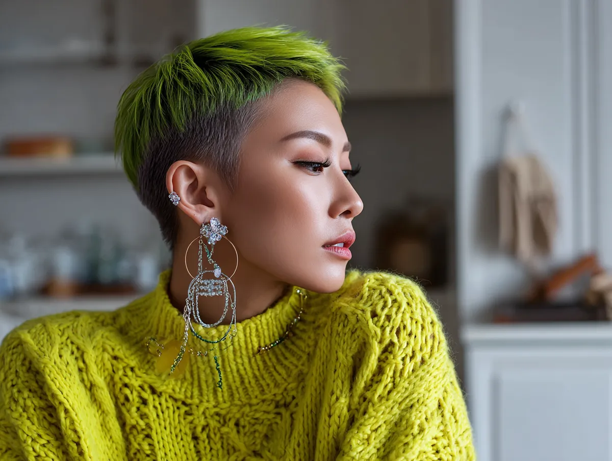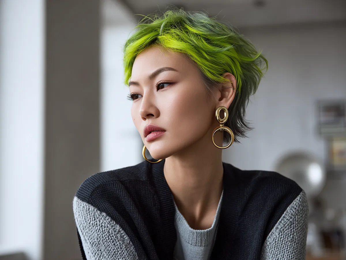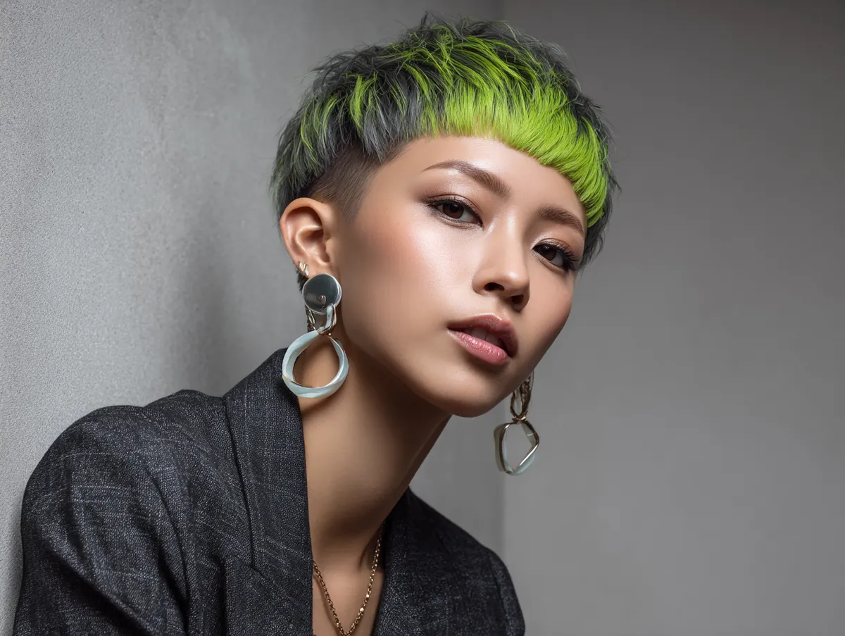 Korean Short Hairstyle with Textured Crop in Neon Green Edge
