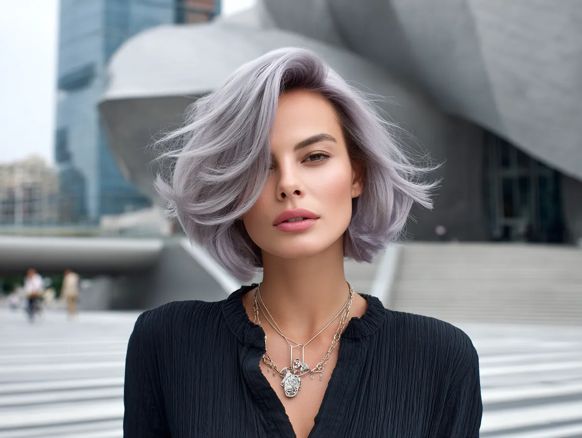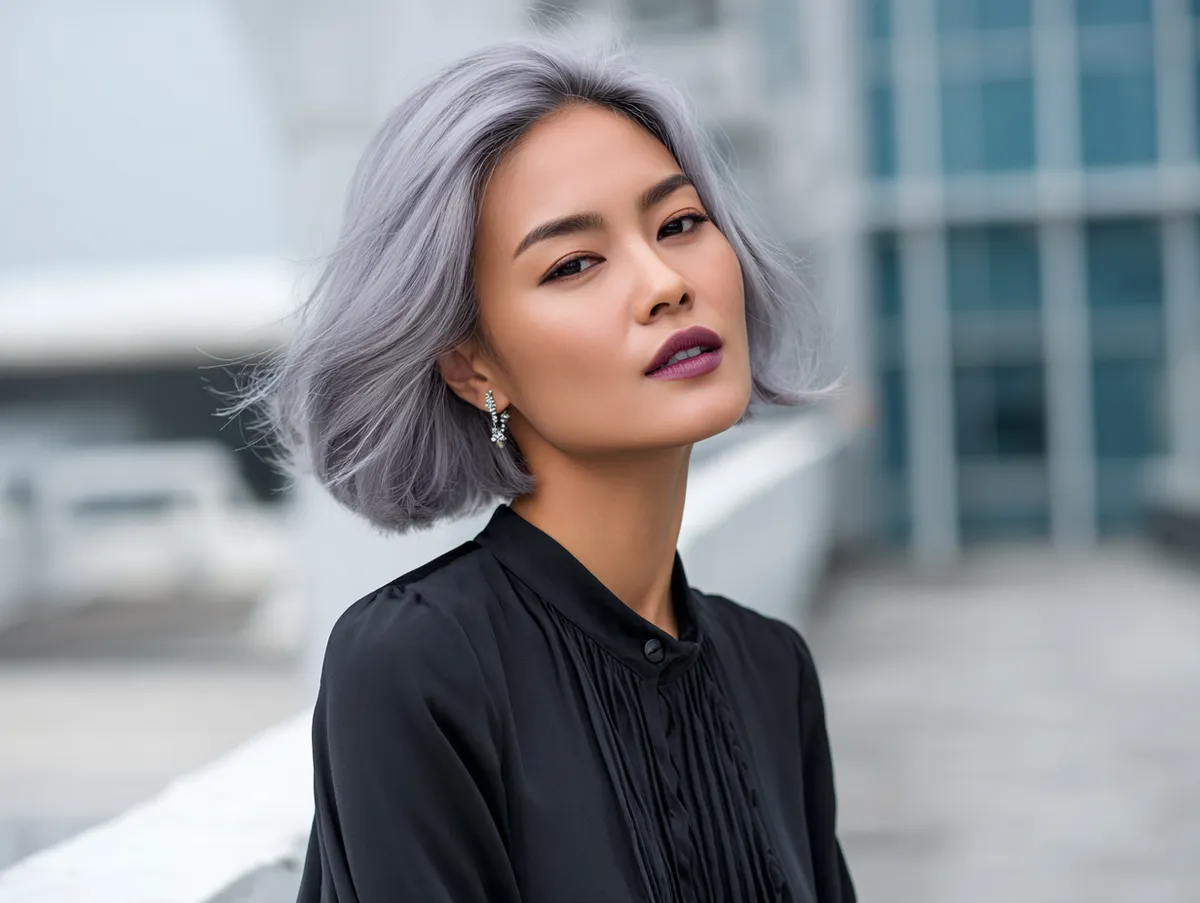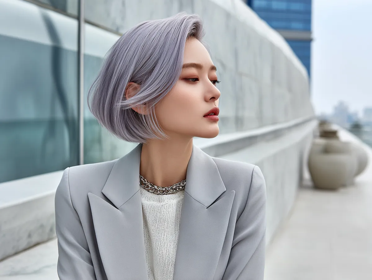 Maintenance is straightforward. The lob length provides enough room for different styling methods, while the layers reduce heaviness. Straightened for formal events or tousled for casual outings, the look adapts with ease. The silver lavender glow requires upkeep, but paired with a Korean short hairstyle, it becomes a highlight rather than a burden. For those with dense strands, this combination proves that hair can be both practical and artistic.