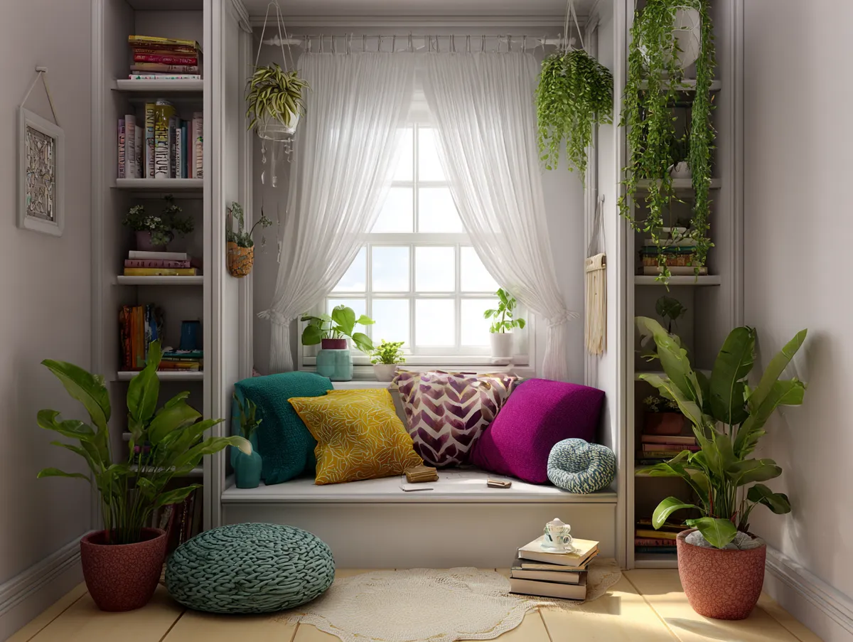 The first photo captures the charm of a small window transformed into a cozy reading nook. The window, though small in size, plays a big role in creating an inviting corner. Its sash design allows for ample natural light to flood in, illuminating the nook and creating an airy feel.