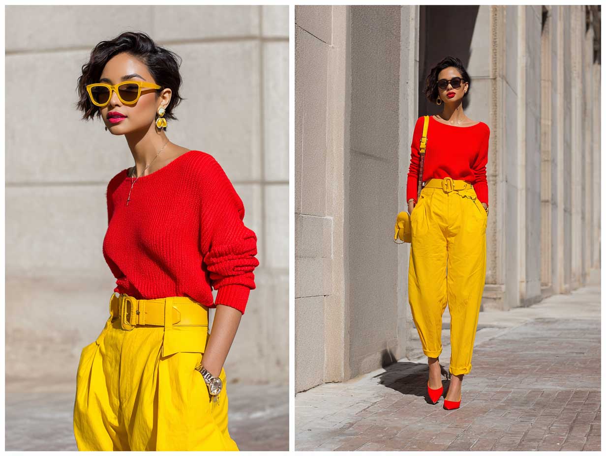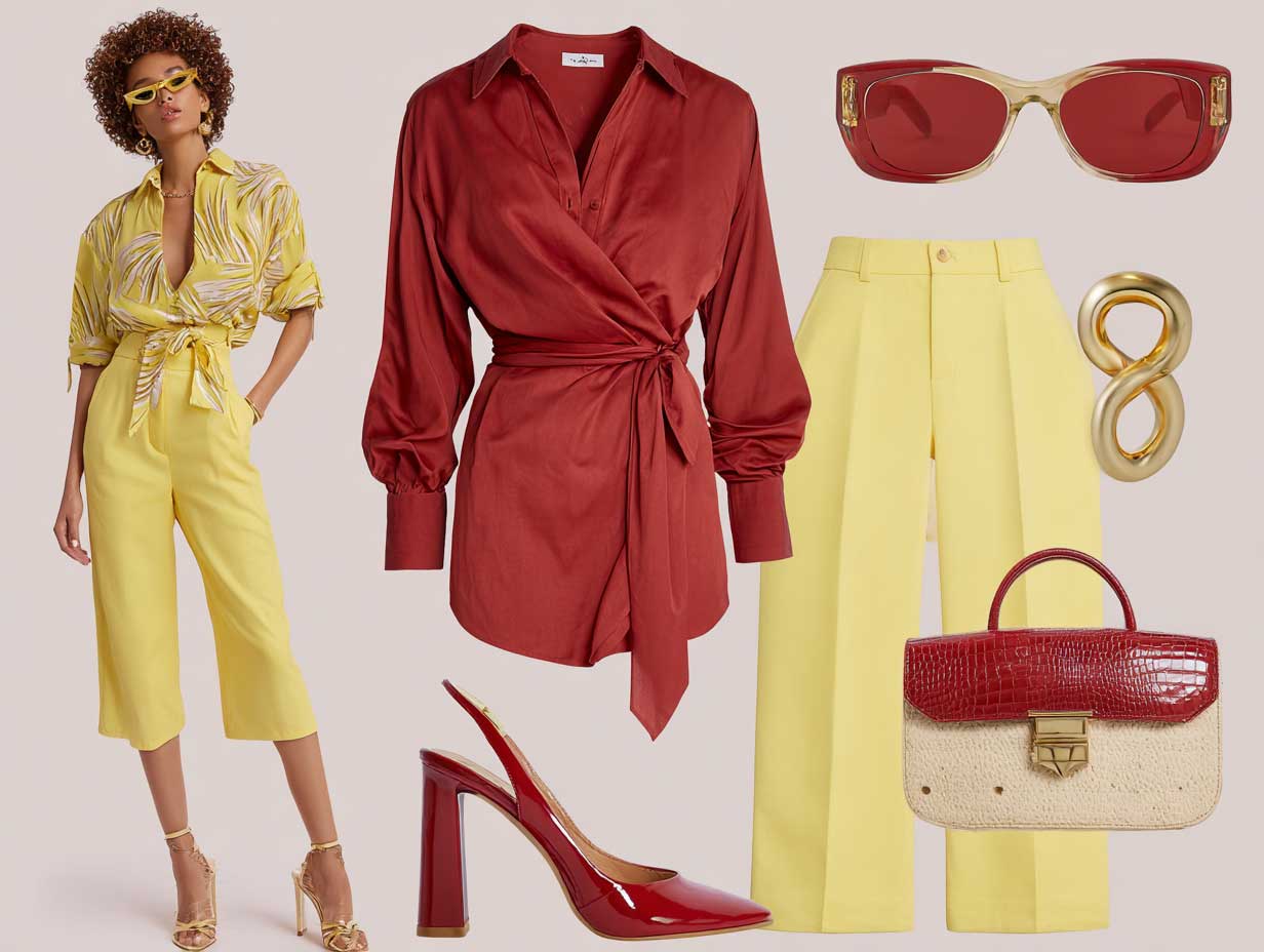 The combination also suits all skin tones, making it a versatile option for different personal styles. The key lies in allowing one tone to lead (yellow) while the other amplifies the effect through detail (red).