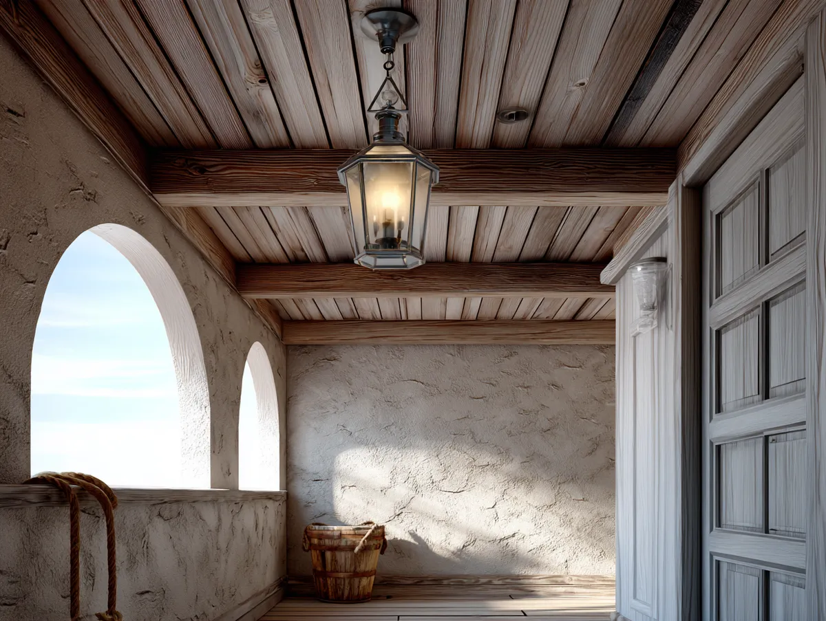 Often complemented by white or sandy-colored trim, the blue ceiling offers a pleasant contrast and further enhances the coastal vibe. The design may also include a ceiling fan for those warm beach days, providing a functional element that fits perfectly with the relaxed aesthetic.
