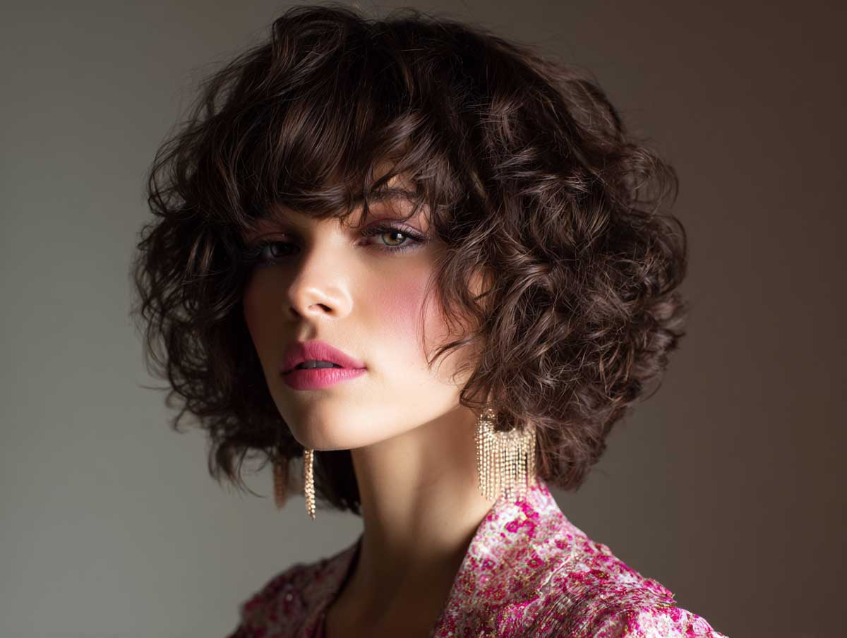 This bold interpretation of the curly shag haircut takes its inspiration from vintage icons who weren’t afraid to push boundaries. Defined by dramatic bangs and a high crown, it’s the haircut for those ready to make a statement with every step. The short, bold bangs frame the face with striking impact, drawing attention to the eyes and cheekbones while anchoring the overall structure of the cut.