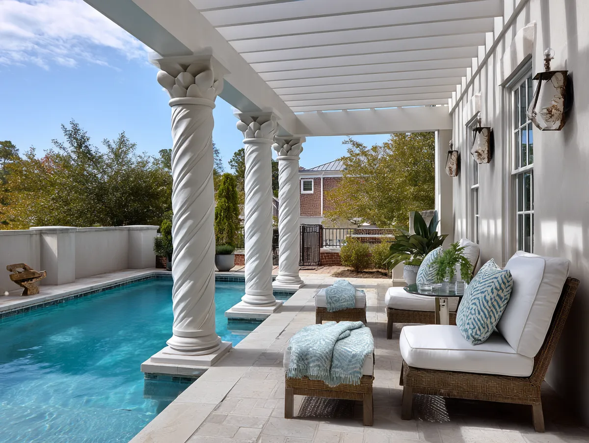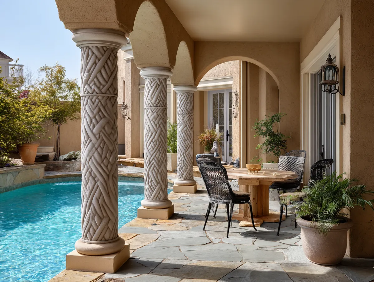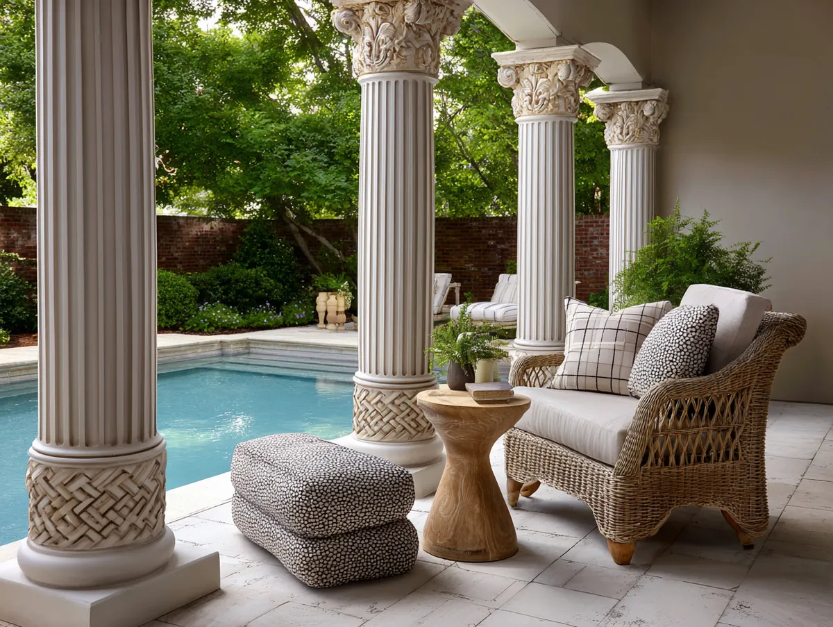 Decorative Outdoor Columns Enriching a Poolside Patio