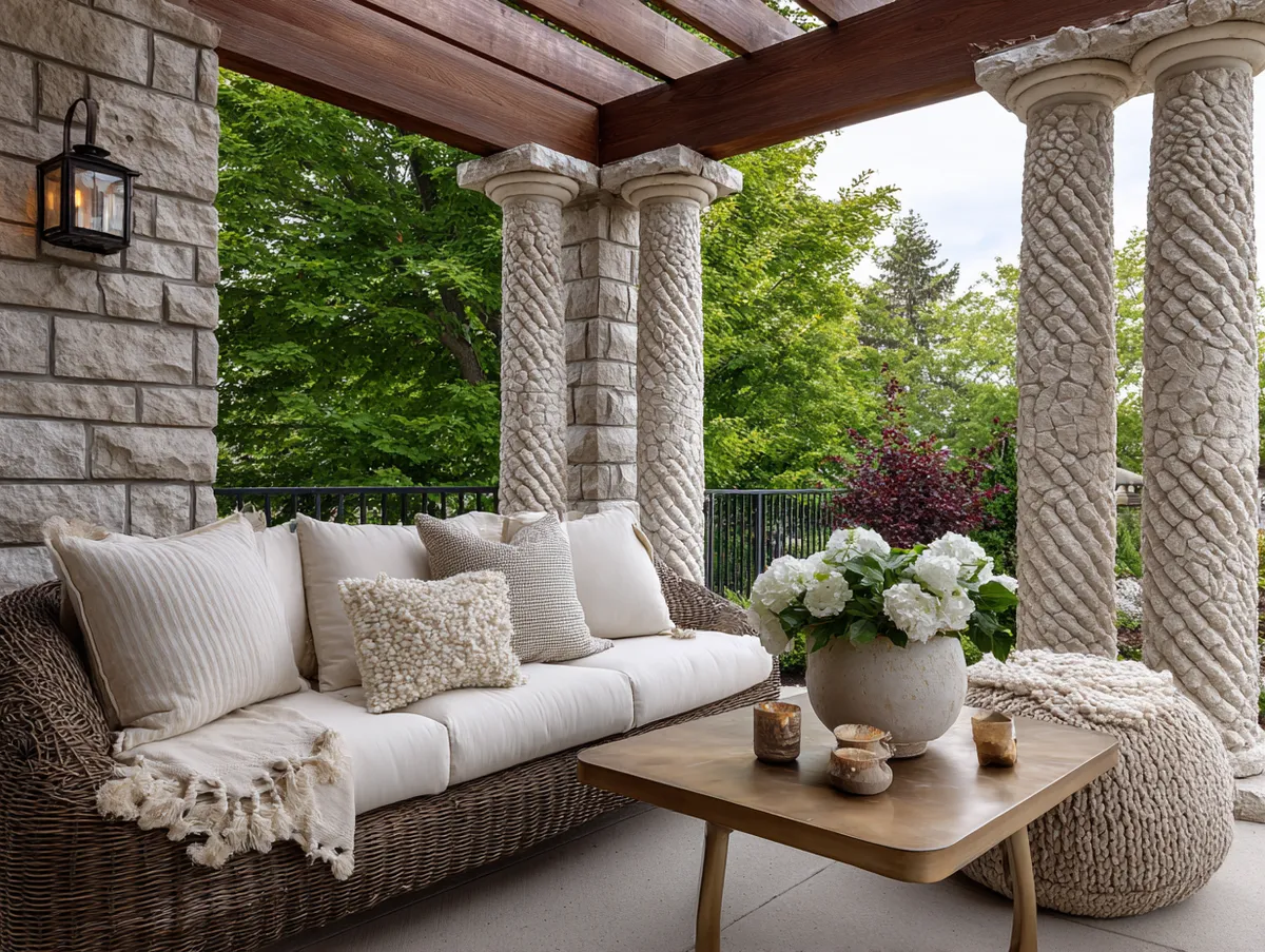 Decorative Outdoor Columns Gracing a Cozy Patio Space