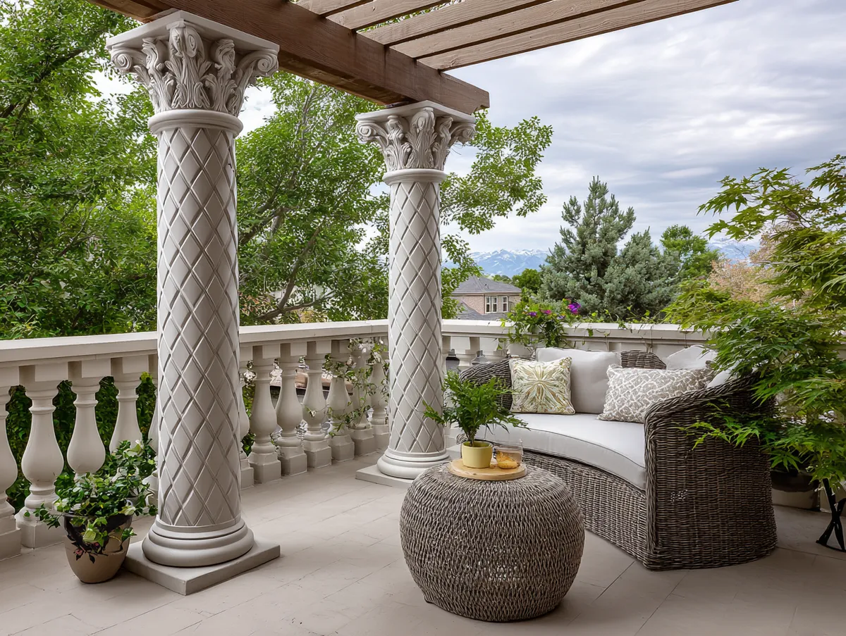 Lastly, the image as a whole illustrates the immense potential of decorative outdoor columns in enhancing outdoor spaces. By combining aesthetic appeal with functional purpose, these columns help create a patio space that is not only structurally sound but also visually captivating. Whether it’s their intricate designs, their role in space definition, or their integration into the overall outdoor aesthetic, these columns showcase how architectural elements can significantly elevate the design of a patio.