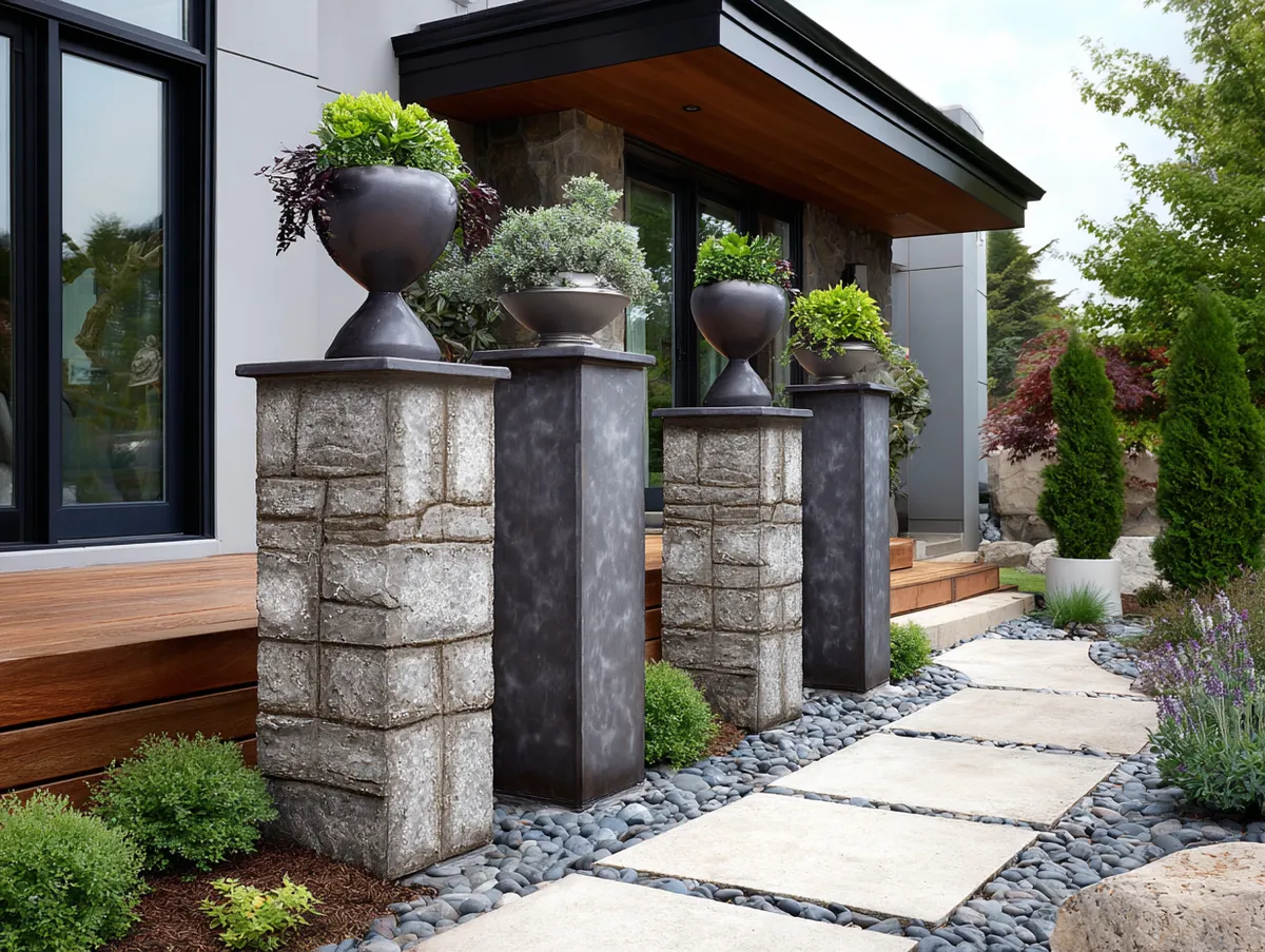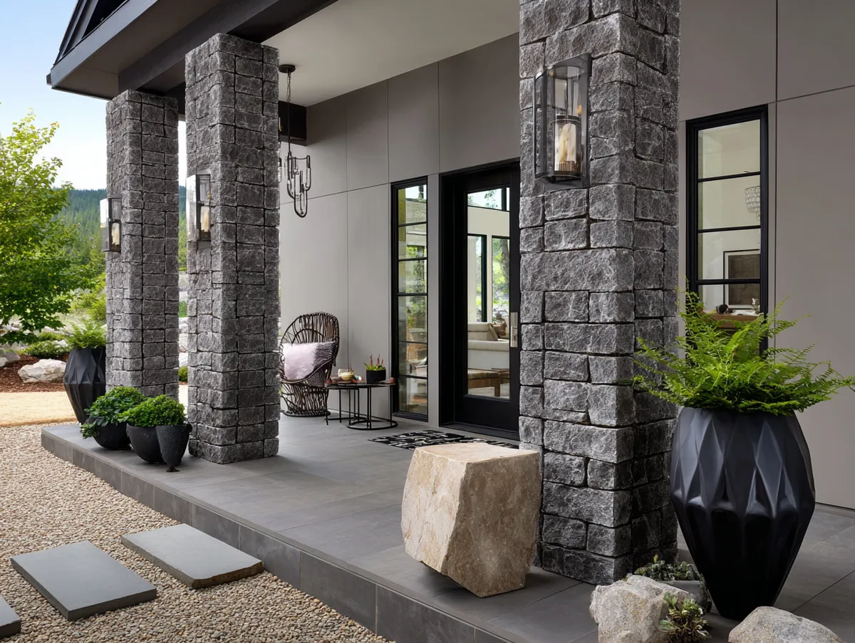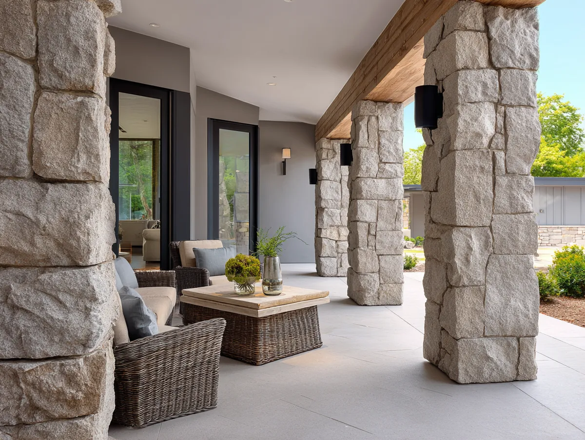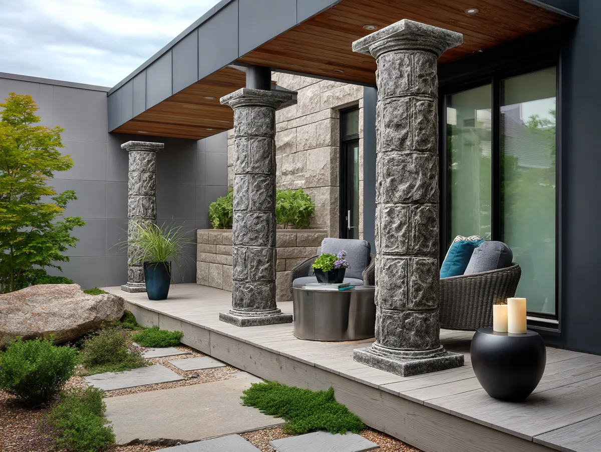 Stone Decorative Outdoor Columns Accentuating a Modern Patio Design