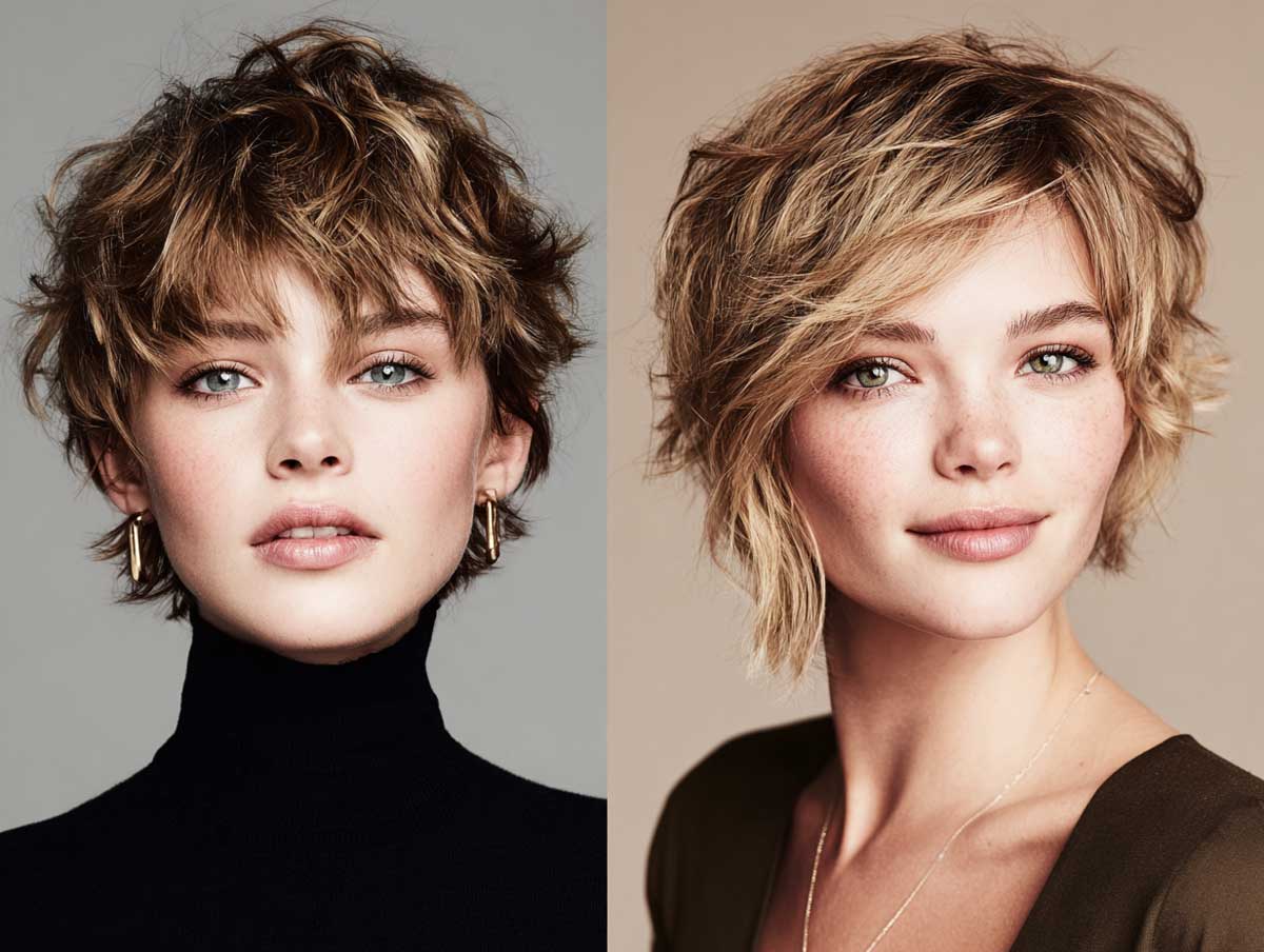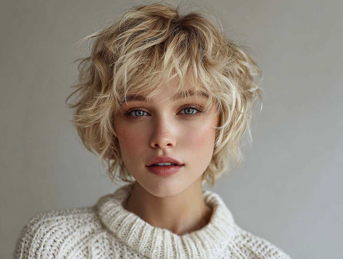 A fiery red tousled fluffy haircut is the definition of bold charm. It captures attention immediately, not only because of the intense, glowing shade but also because of the way the fluffy texture allows the color to move and catch the light. Red tones are often associated with confidence, passion, and individuality, making this combination ideal for someone who loves to stand out while still maintaining a natural sense of movement in their hair.