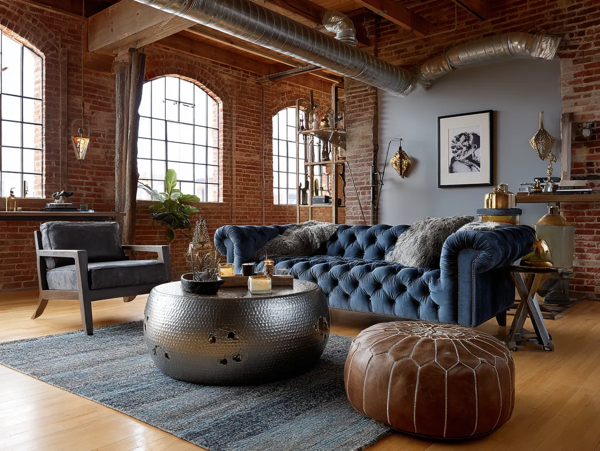 This design idea for loft spaces is perfect for those who love an edgy, yet cozy aesthetic, combining the rawness of industrial design with personal touches.