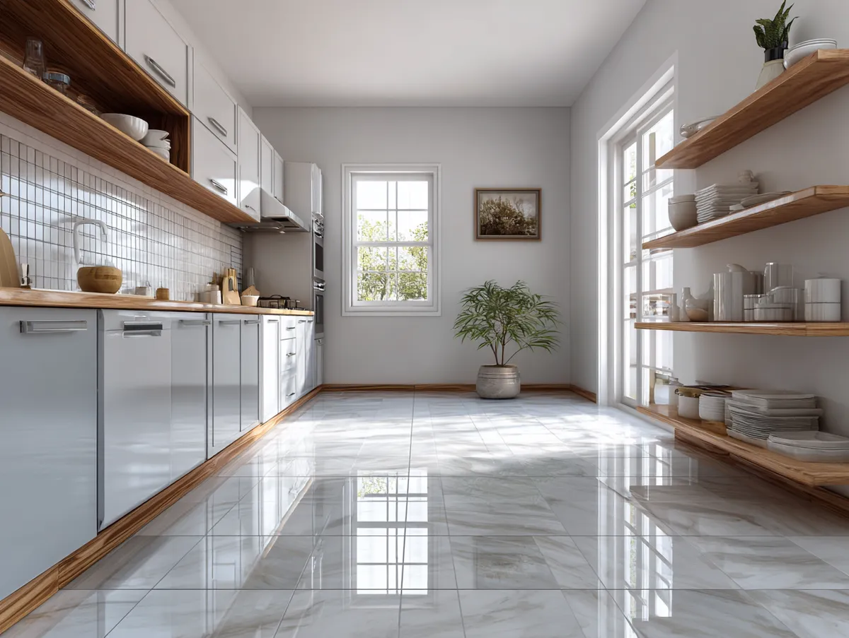 Porcelain tiles are celebrated for their durability, making them an excellent choice for high-traffic kitchens. They resist scratches, stains, and moisture, ensuring your kitchen floor maintains its luster over the years.