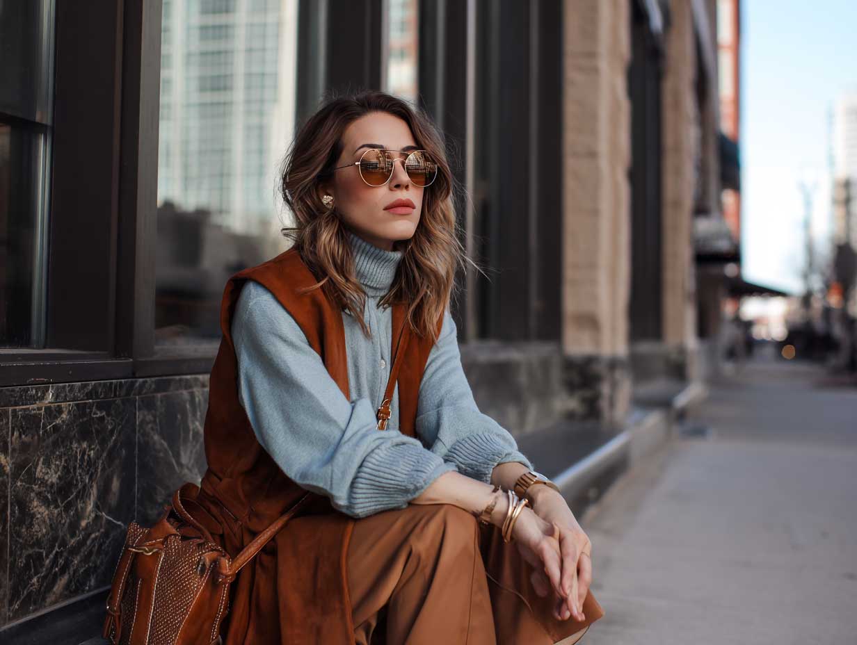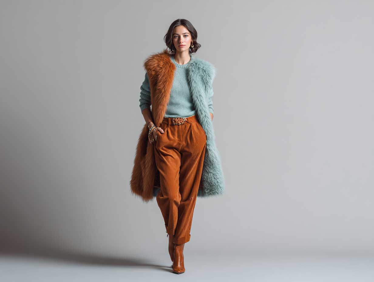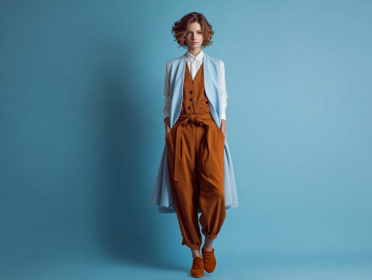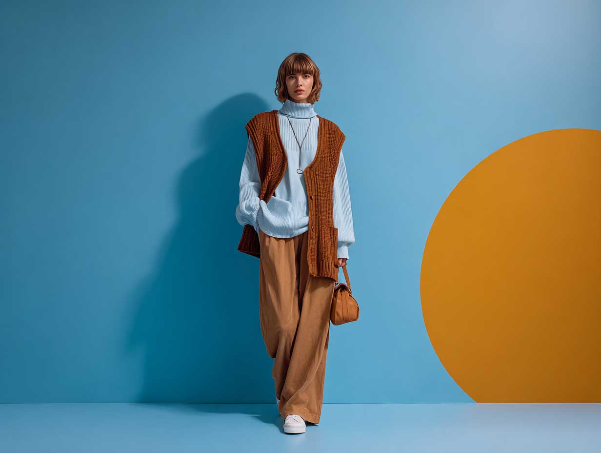 Blending ice blue and cinnamon brown through thoughtful layering and complementary silhouettes breathes new life into the modern wardrobe. Whether styled through midi skirts and waistcoats, jeans and cropped knits, or culottes and longline vests, these combinations prove that vest outfit ideas can be as fresh as they are functional. By carefully balancing warm and cool tones, each outfit becomes an exploration of contrast, shape, and elevated everyday fashion.