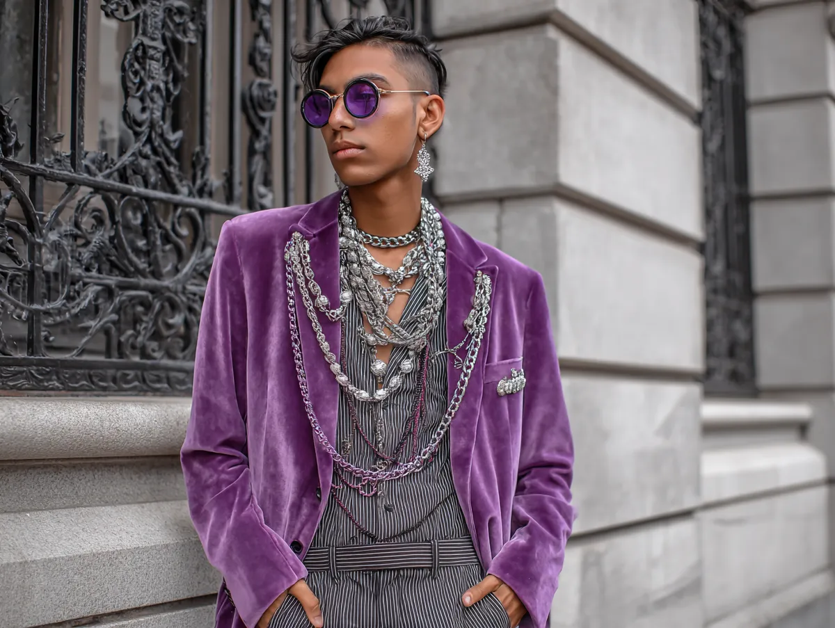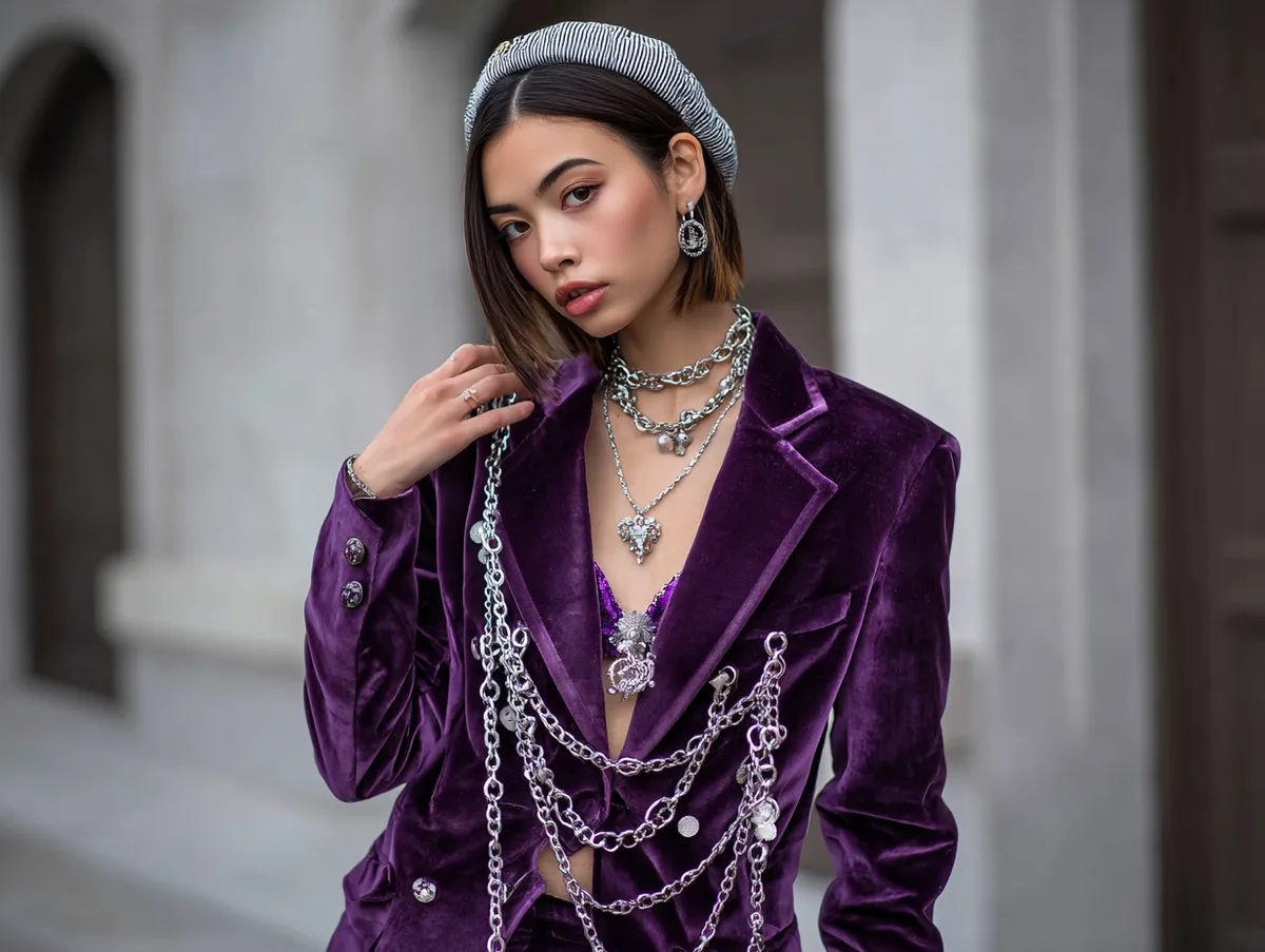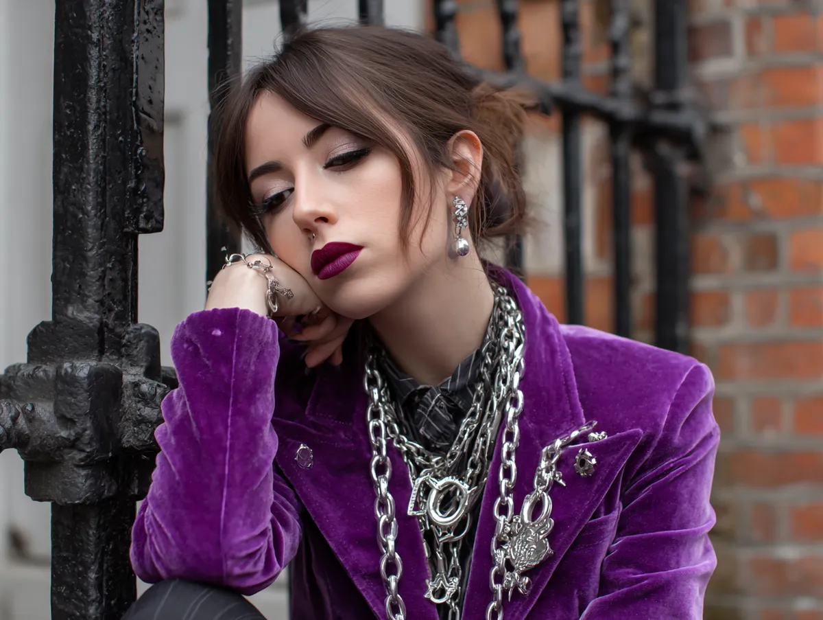 Emo Outfit Ideas with Purple Velvet Jackets and Silver Chains
