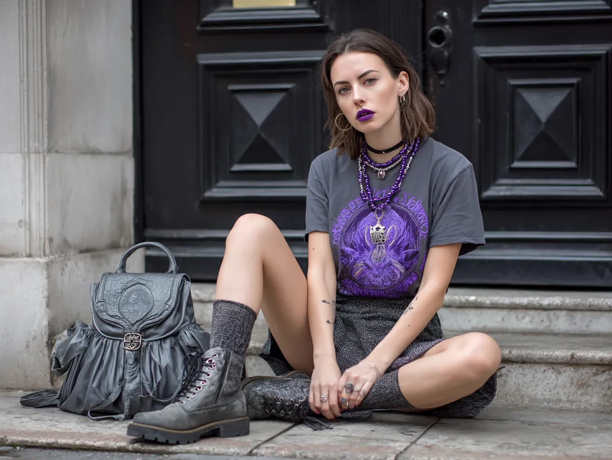 Grunge fashion thrives on moody aesthetics and effortlessly layered clothing. When combining deep purple tones with charcoal shades, the result is an edgy yet sophisticated look that perfectly balances rebellion and style. These color combinations create a mysterious vibe while staying true to the essence of alternative fashion. From oversized hoodies to vintage-inspired pieces, these layered looks offer endless opportunities for self-expression.