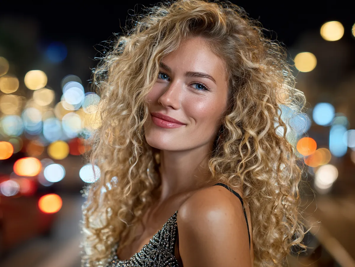 Sewin Hair Style with Luxurious Honey Blonde Curls for Nightlife Glamour