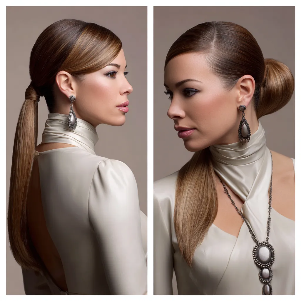 This sleek hair style for ponytail is perfect for corporate events, galas, or formal gatherings where a refined look is necessary. Its simplicity doesn’t take away from its impact, making it a go-to option for those seeking a polished yet bold style that speaks of confidence and sophistication.