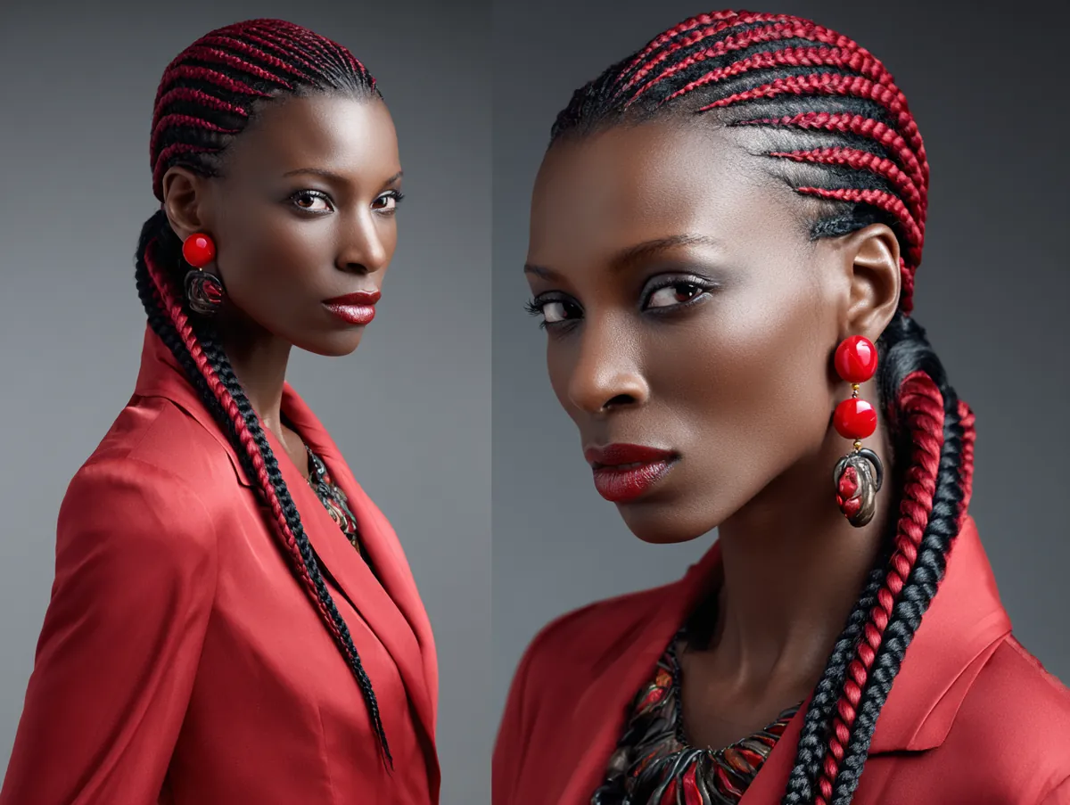 This combination is perfect for anyone looking to take their cornrows to the next level. Whether worn as a bold fashion statement or for everyday wear, fiery red and black cornrows offer a powerful aesthetic. The interplay of these colors emphasizes the beauty of the cornrow design, making it a standout choice for those who want to blend tradition with modern flair.