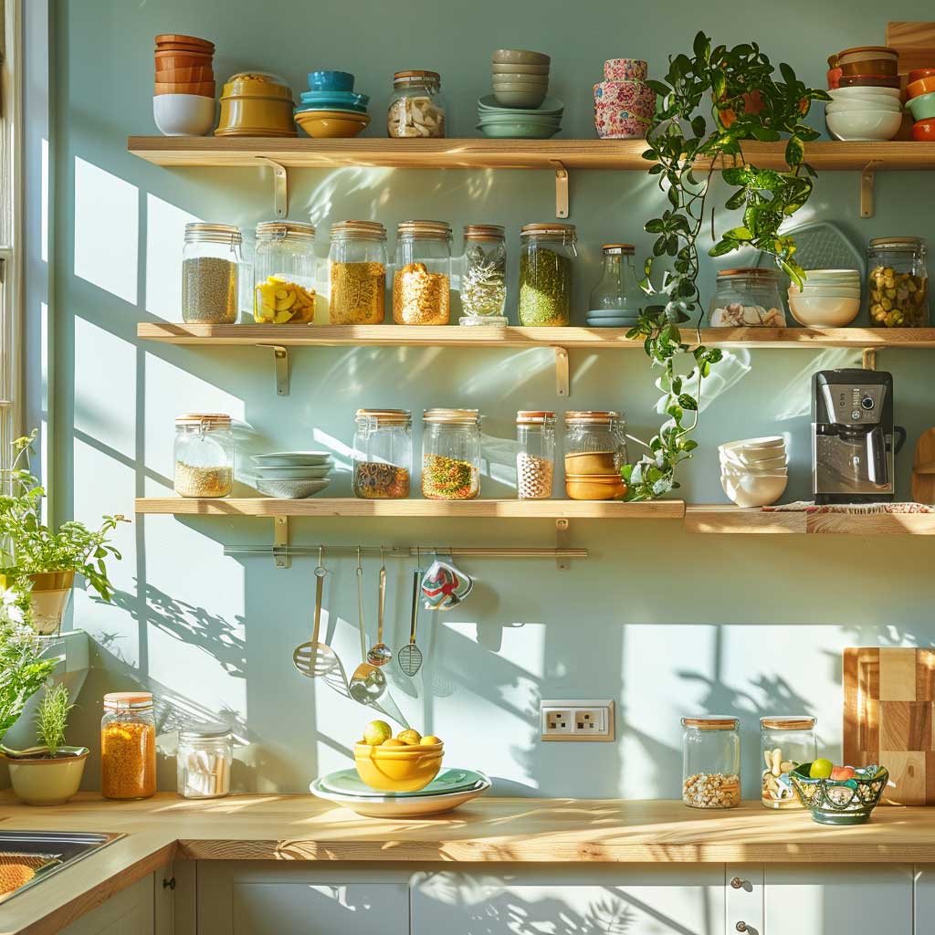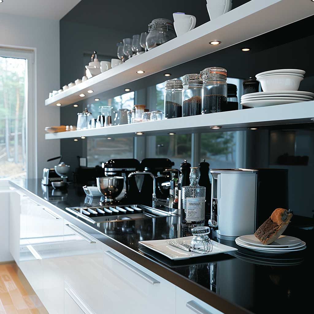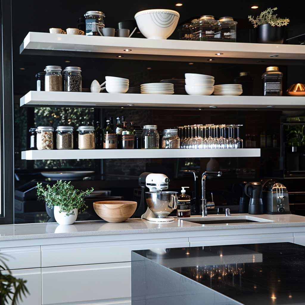 Floating shelves serve more than just a practical purpose in the kitchen; they are pivotal in defining the space’s character and style. By choosing the right materials, configuration, and decorative items to display, you can create a functional area that reflects your personal taste and enhances your kitchen’s overall ambiance.