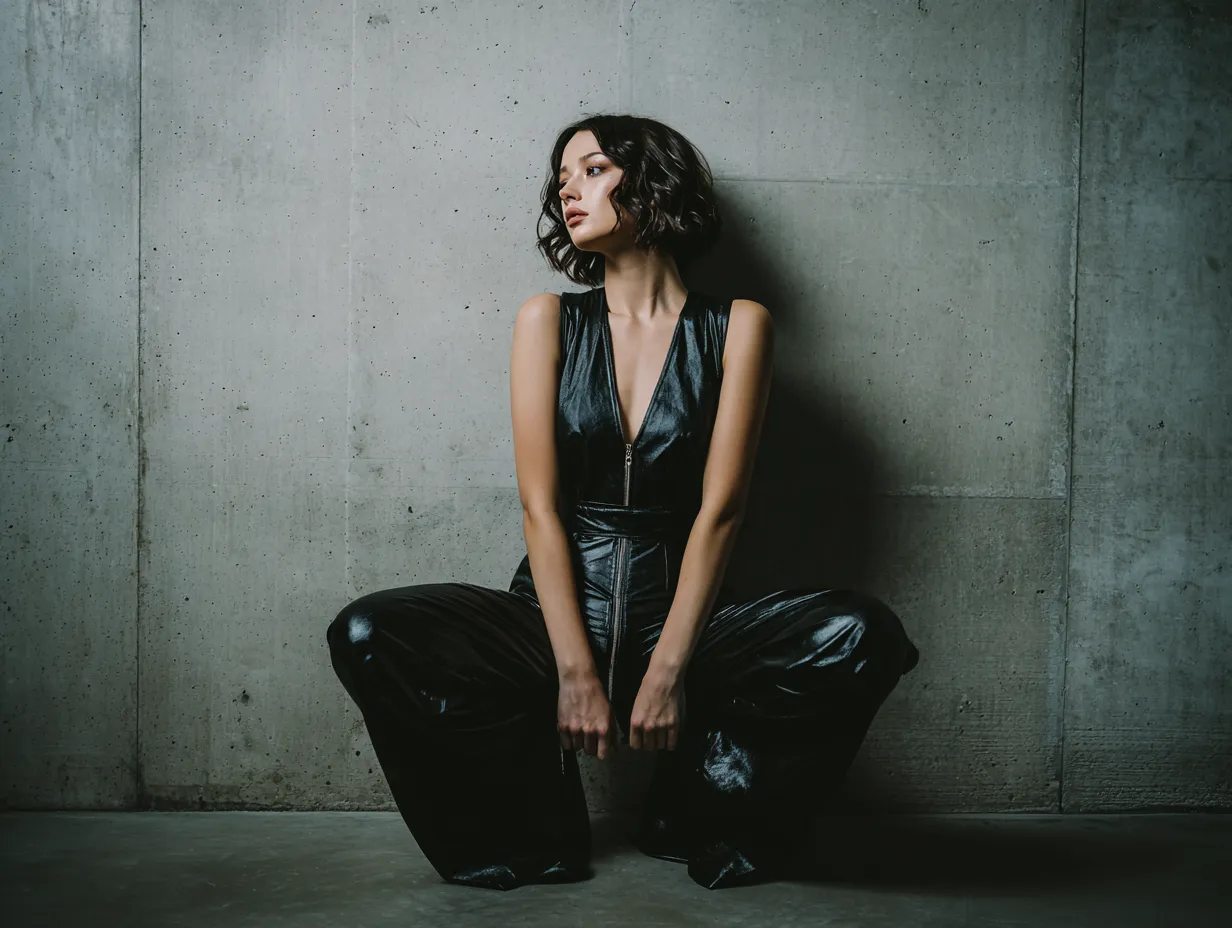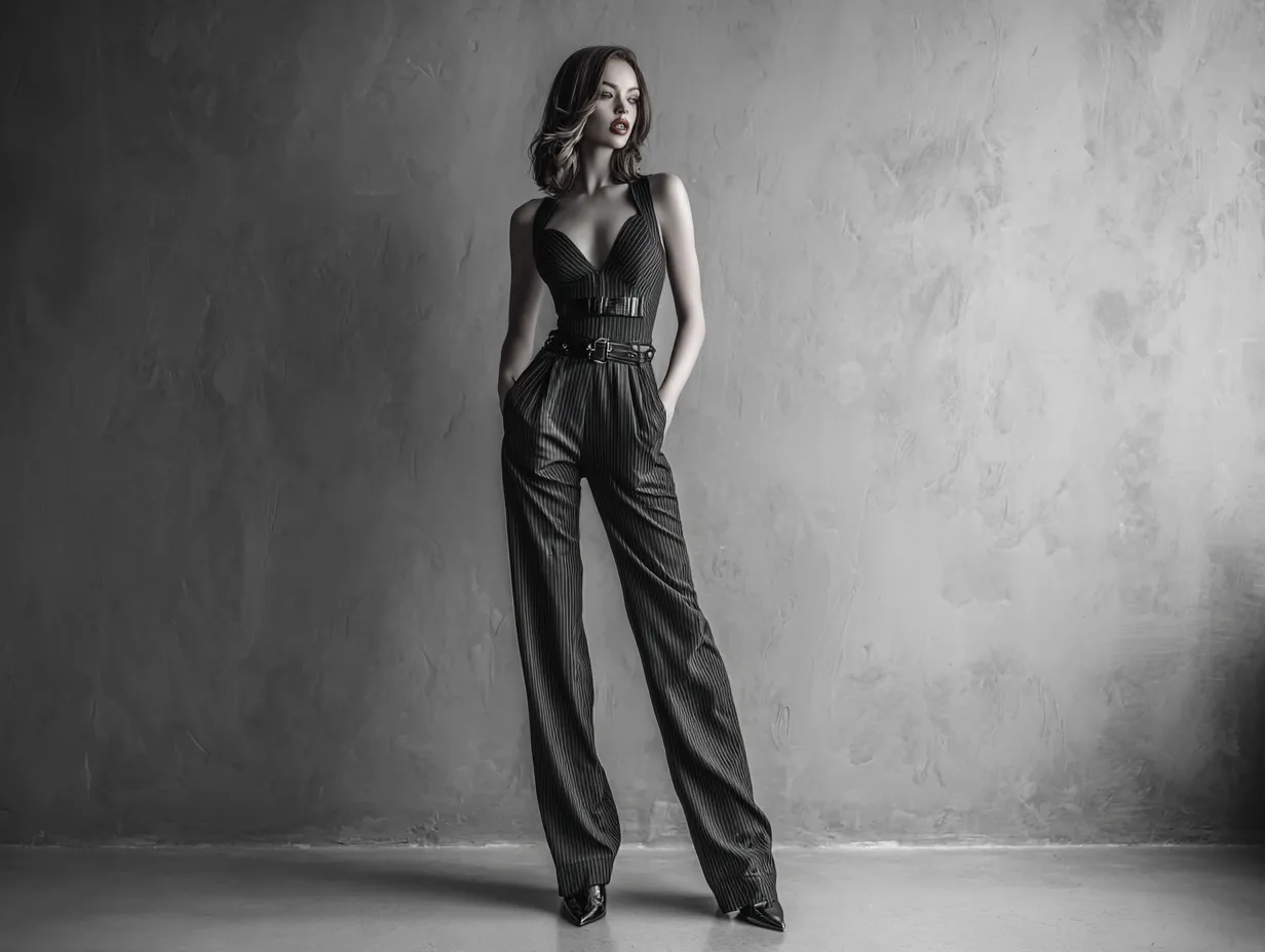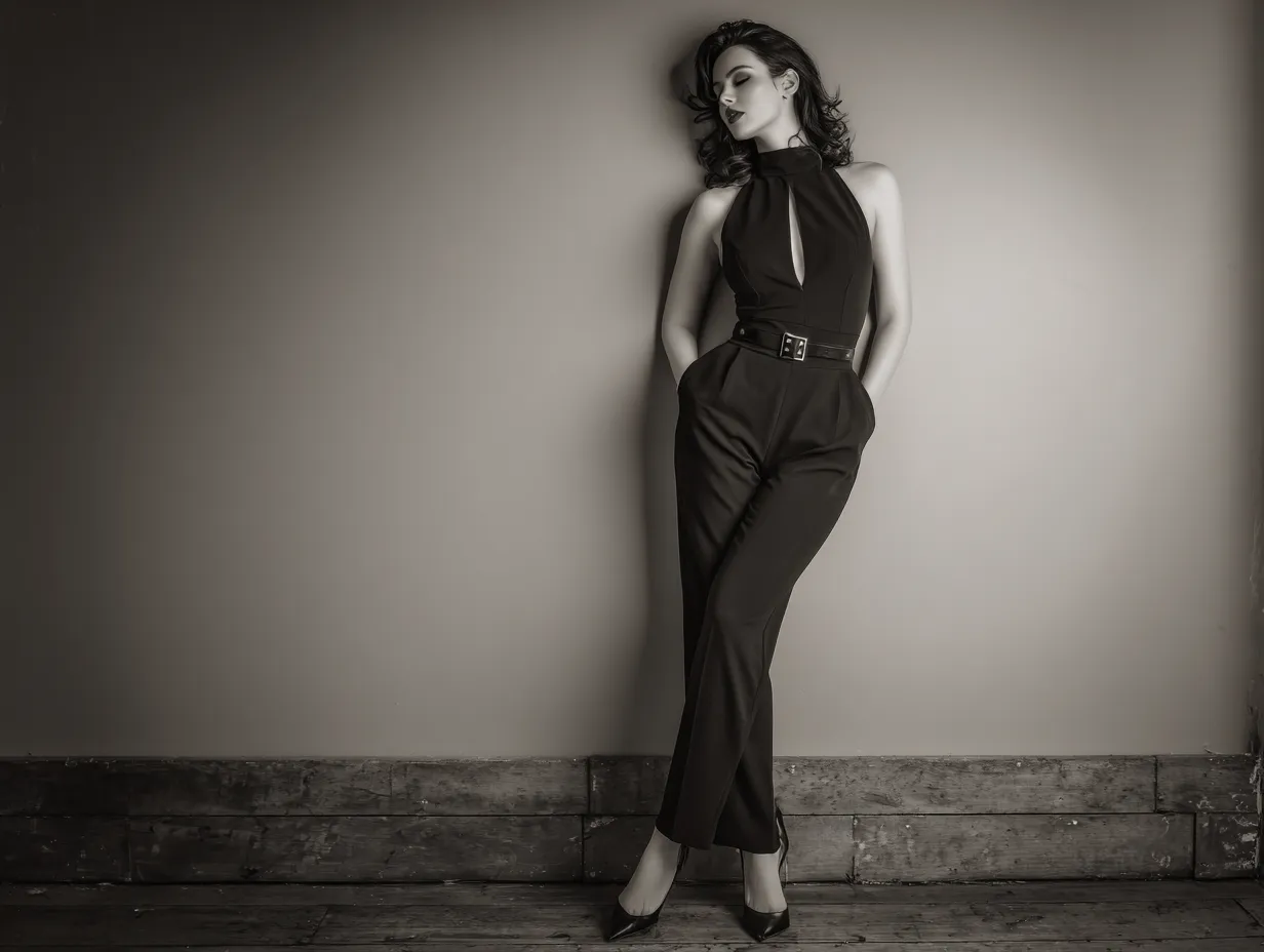 This is a look that doesn’t whisper sophistication; it sears it into the room. With jumpsuit outfit ideas like this, black is no longer basic. Instead, it’s a playground for pushing surface, volume, and emotional impact to new extremes. The outcome? A silhouette that walks like armor but feels like fashion’s sharpest edge.