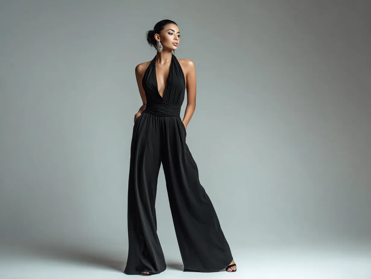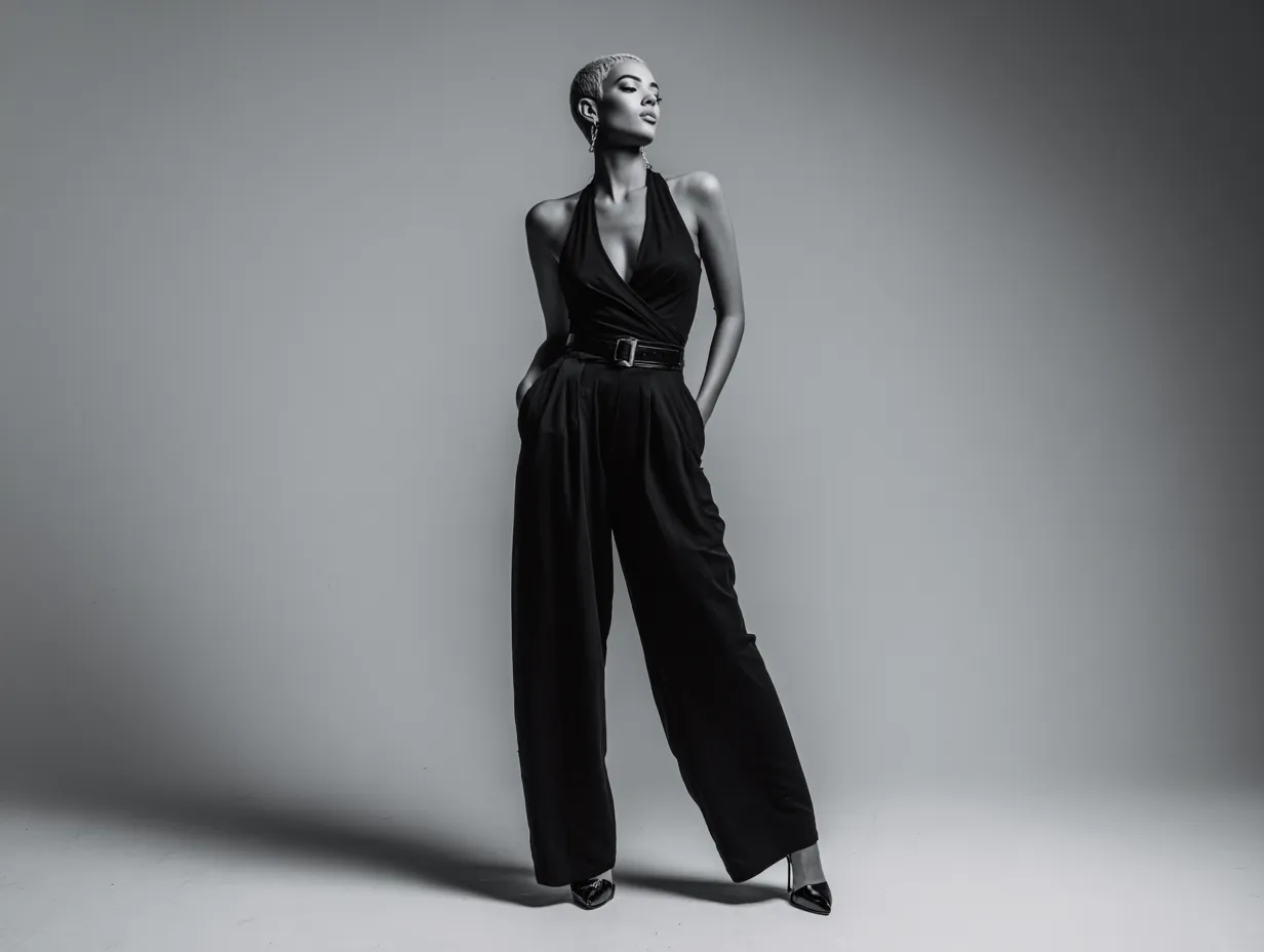 With the right styling—cream-toned nails, minimal makeup, brushed-up brows—this look becomes otherworldly yet intimate. These jumpsuit outfit ideas prove that neutral palettes can carry intense impact when every piece speaks the same soft, strong language.