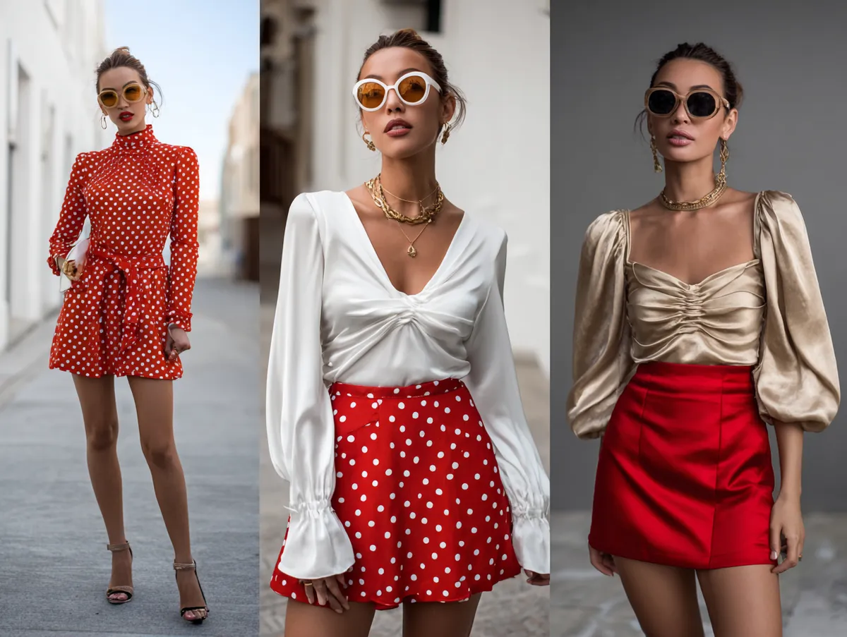 Chic Short Skirt Outfit Ideas Featuring Red Polka Dots and Satin Tops