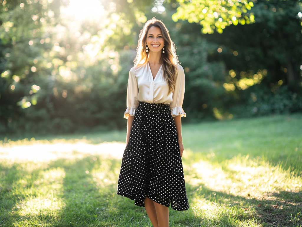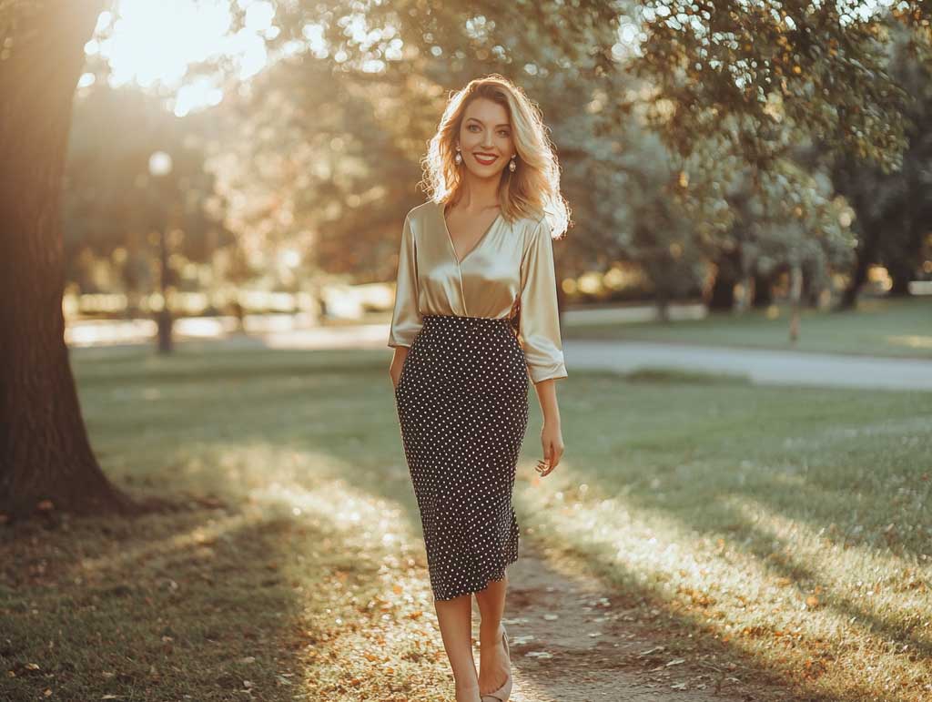 Polka dot skirts paired with satin blouses create an effortlessly chic combination that exudes charm and sophistication. This playful yet polished pairing is perfect for various occasions, from casual outings to semi-formal events. The versatility of polka dots and the luxurious texture of satin allows you to experiment with colors and styles, making it an enduring fashion choice. Here are some inspiring outfit ideas to bring this trendy combination to life.