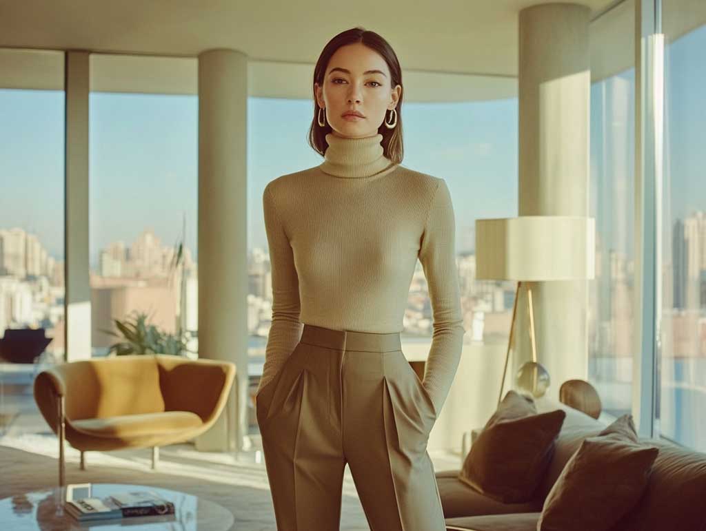 Thanksgiving Outfit Ideas Featuring High-Waisted Trousers and Turtlenecks
