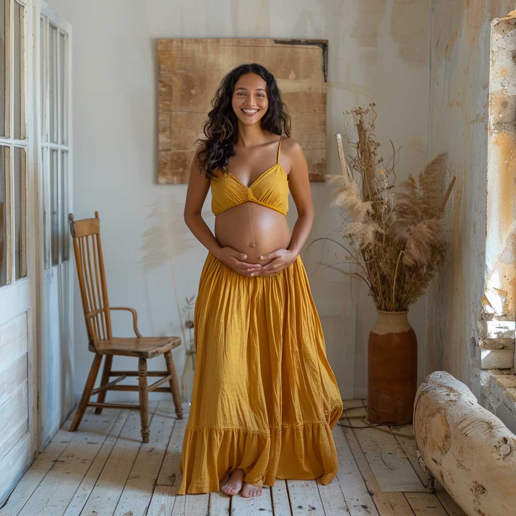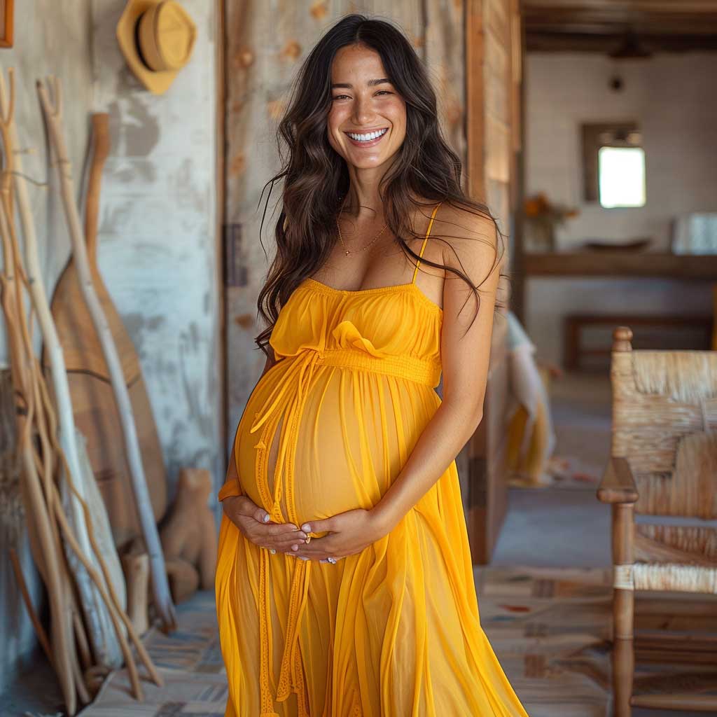 A sundress in sunny yellow not only enhances the visual appeal of your maternity wardrobe but also has the power to uplift your mood. The color yellow is often associated with happiness, optimism, and warmth, which can be especially beneficial during the more challenging days of pregnancy. Wearing bright and cheerful clothing can positively impact your mindset, making you feel more energetic and upbeat.