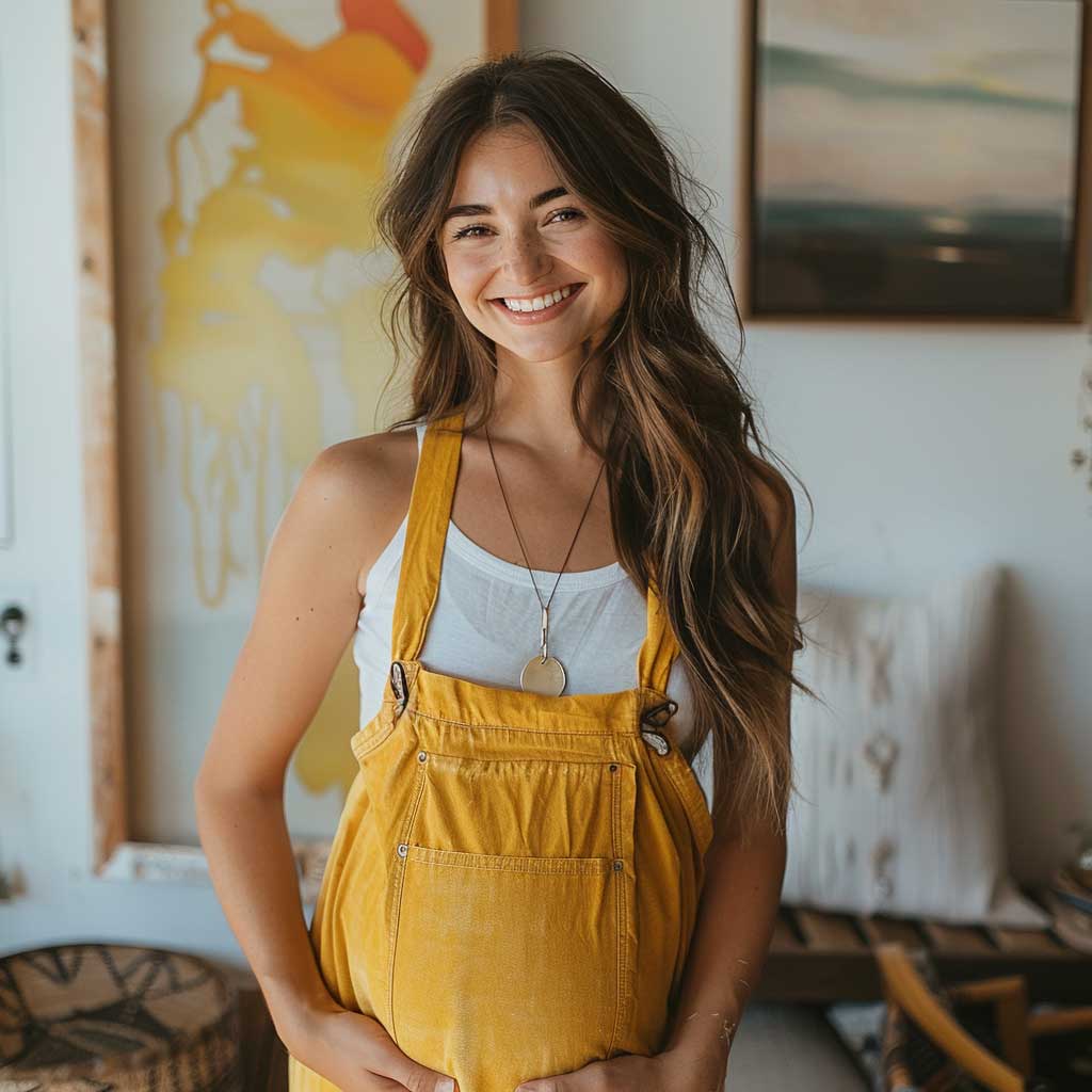 Finding playful and practical pregnancy outfit ideas can be an exciting part of preparing for motherhood. Yellow maternity overalls are a standout choice, offering a playful and youthful vibe that is perfect for everyday wear. These overalls provide both comfort and style, making them a great addition to any maternity wardrobe, whether you’re running errands, meeting friends, or enjoying a leisurely day at home.