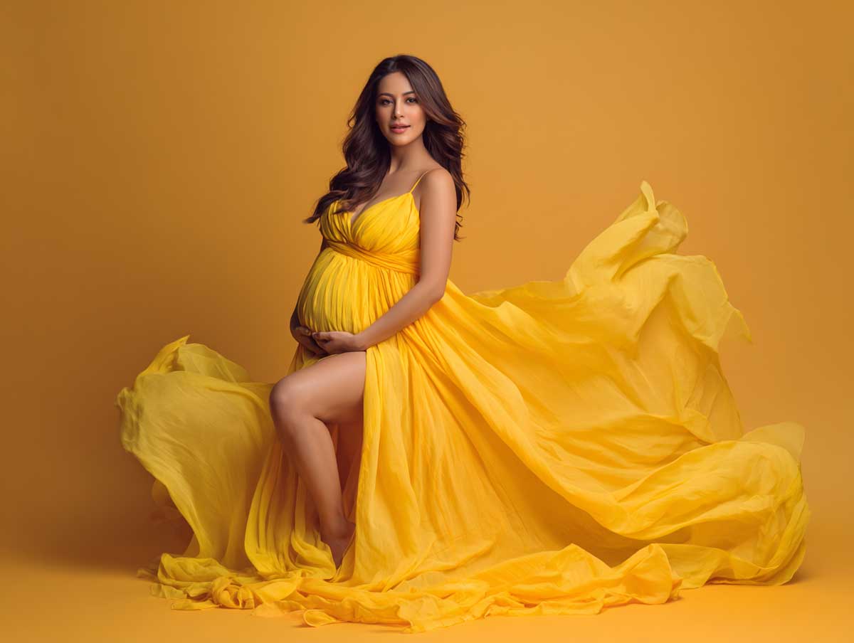 One of the standout features of a maternity gown is its ability to accentuate the beauty of pregnancy with grace and style. The flowing silhouette of a gown provides ample room for a growing bump, while the use of delicate details like lace, embroidery, or pleats adds an element of elegance and refinement. The sunny yellow hue brings a sense of joy and positivity, making it an ideal choice for celebratory events.