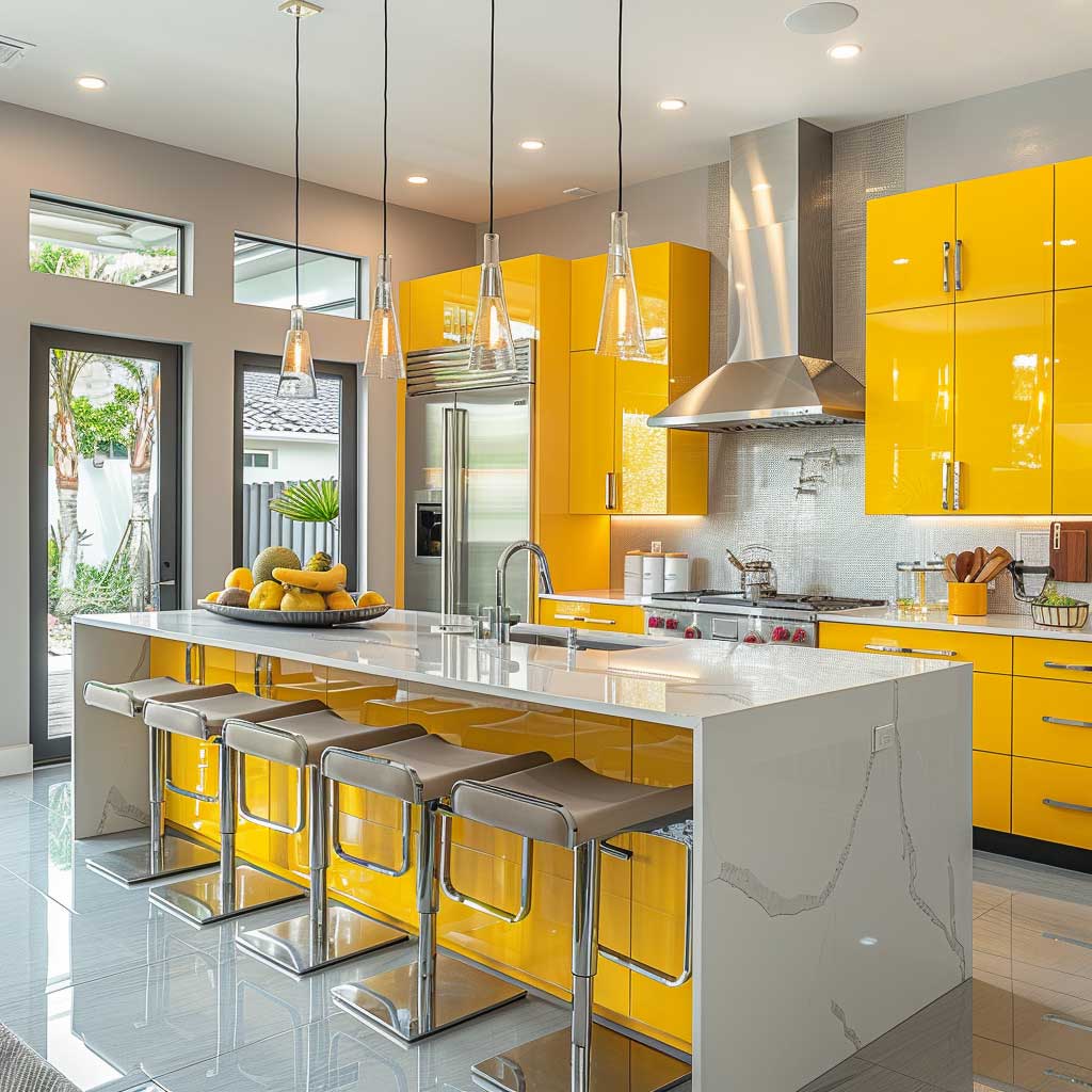 The central piece in many modern kitchens is the island, and choosing a sunny yellow color for this focal point can transform the aesthetics of the entire room. Kitchen islands are not only functional, serving as prep spaces, dining tables, and storage solutions; they also play a crucial role in the overall design of the space. A yellow island can act as a vibrant centerpiece, especially in a kitchen that embraces modern design elements.