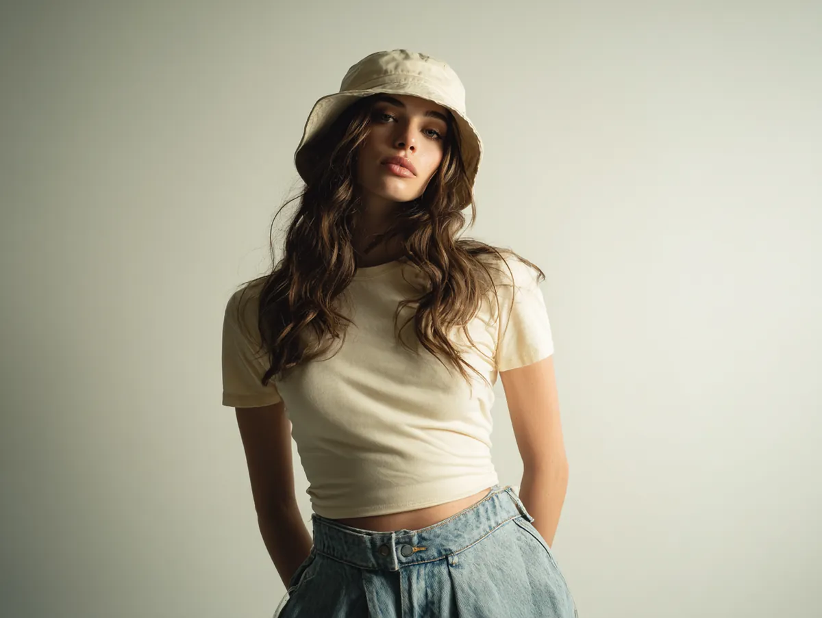 Pairing a soft bucket hat with a cropped tee and wide leg denim creates a stimulating contrast between easygoing comfort and a crisp modern silhouette. The relaxed nature of the hat introduces a playful attitude that suits many settings, from casual daytime styling to polished editorial interpretations. When combined with the structured flow of wide leg denim, the look becomes both approachable and visually memorable. This kind of combination reflects how 90s fashion ideas continue to inspire fresh styling choices today, inviting experimentation without sacrificing everyday wearability.