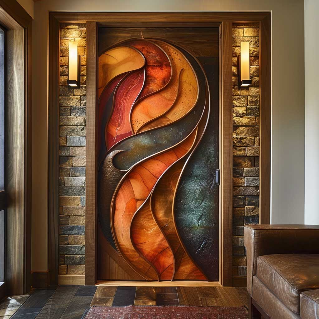 Envision a door with abstract carvings that defy traditional patterns and structures. The creative freedom of abstract art allows for a wide range of designs, from fluid and organic shapes to bold and angular forms. Each carving is a reflection of the artist’s vision, making the door a one-of-a-kind piece that adds character and personality to your home.
