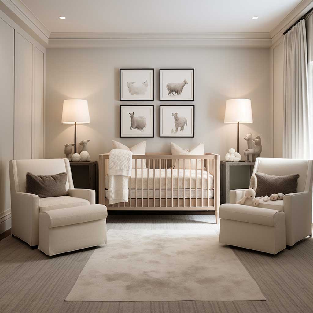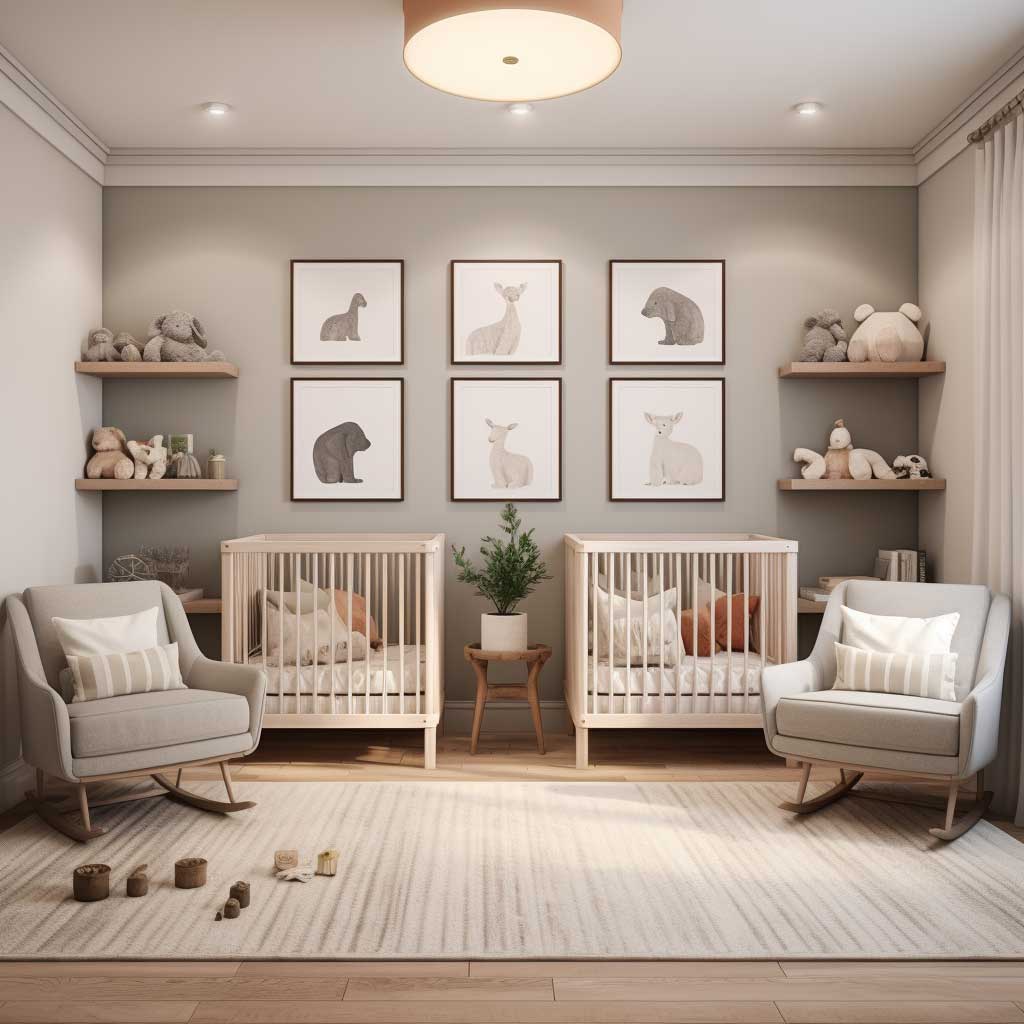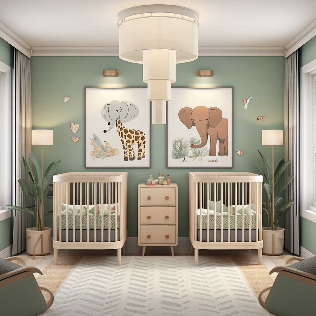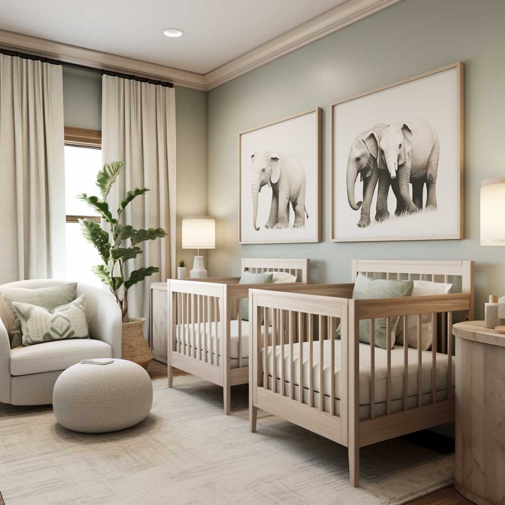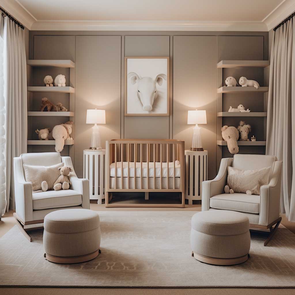 Elegance in a nursery is about more than just aesthetics; it’s about creating a serene and inviting atmosphere. This can be achieved through the use of soft, soothing colors, elegant furnishings, and thoughtful lighting. The elegance in a twin nursery should also reflect the joy and wonder of childhood, using playful yet sophisticated elements.