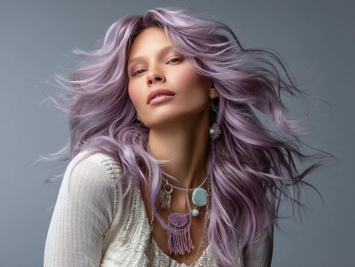 One of the strengths of shattered layering is how it adapts across lengths. Whether worn short, medium, or long, the fragmented cuts create lift and dimension. On fine textures, this ensures that the hair always looks alive rather than flat. The pastel lavender accent amplifies shine, making the movement even more noticeable.