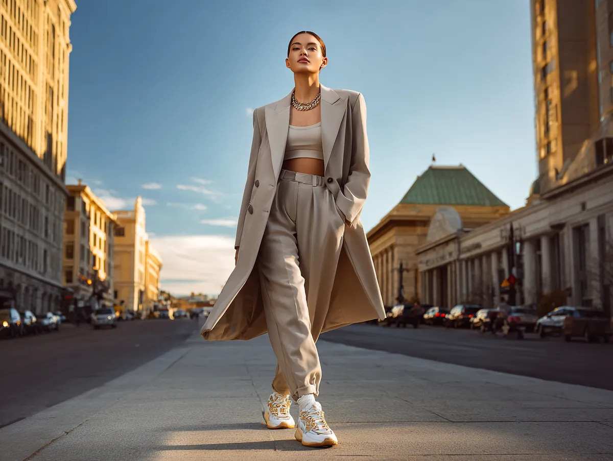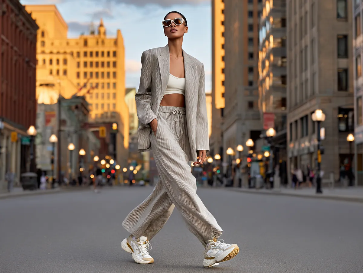 Sneakers play a vital role in these modern combinations. A pair of chunky trainers or sleek minimalist sneakers can tone down the formality of tailoring and make the look approachable for daily wear. Layering is also key: hoodies, graphic tees, or even fitted sportswear tops under a structured blazer bring an athletic spirit that feels current. These combinations are not only visually appealing but practical, as they allow freedom of movement and versatility throughout the day.