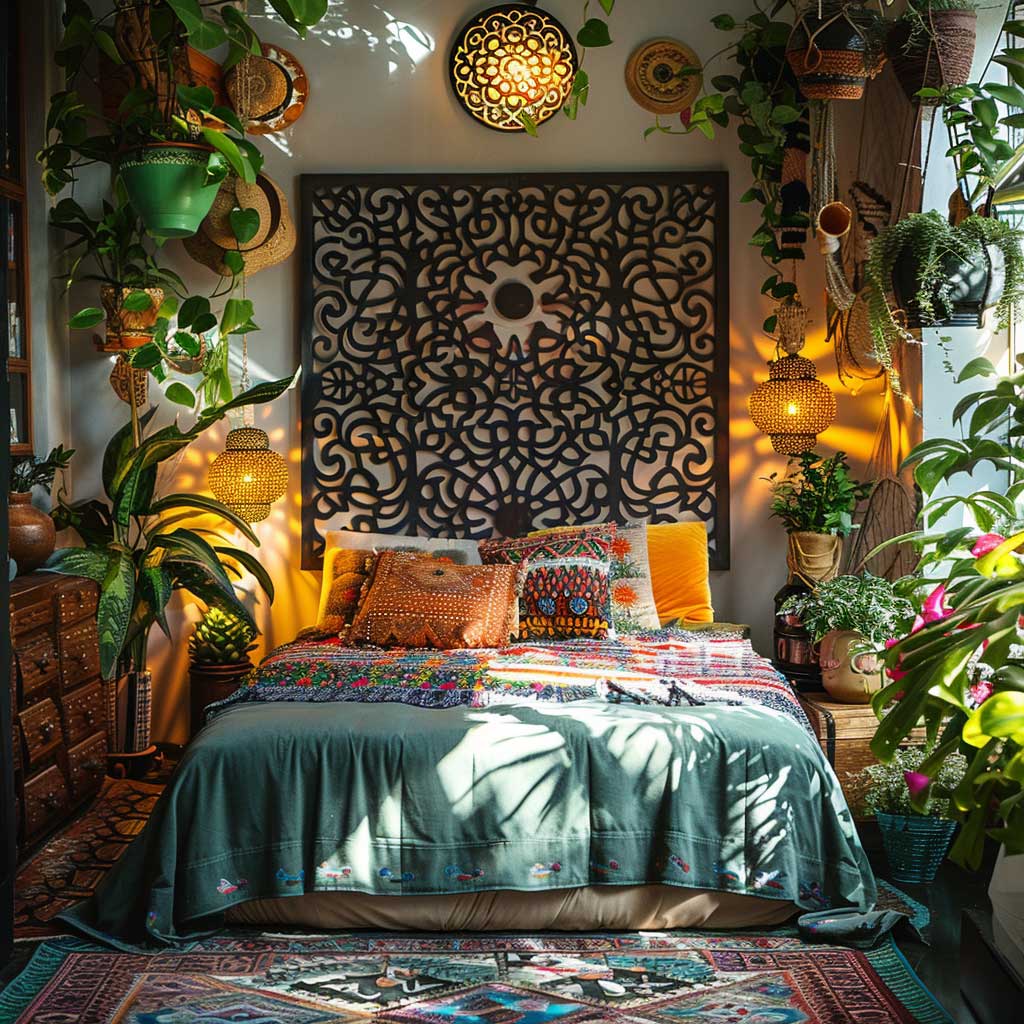In the heart of a home decorated with a bohemian ethos, the bedroom stands as a sanctuary of peace, creativity, and personal expression. It’s a space where the unconventional beauty of bohemian style meets the sleek, enduring charm of metal design panels, creating a unique aesthetic that is both inviting and inspiring. The fusion of these elements brings forth an interior that is not just visually captivating but also a true reflection of individuality and artistic flair.