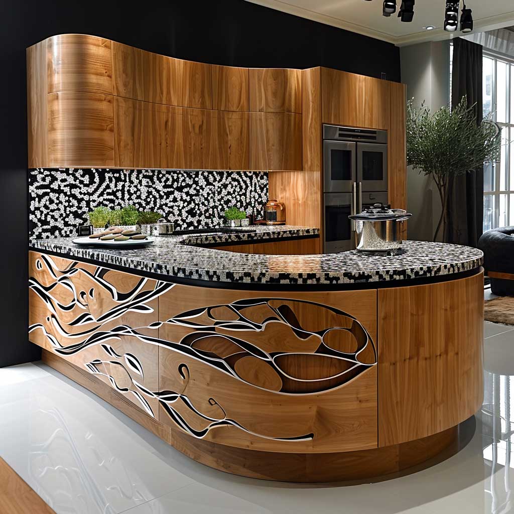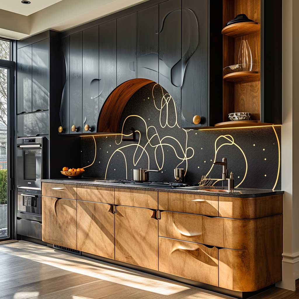 In conclusion, modern Art Nouveau interior design in kitchens is a harmonious blend of artistic flair and contemporary practicality. It allows for a creative and elegant expression of style while maintaining the functionality essential in a modern kitchen. This approach to design demonstrates how historical styles can be reinterpreted in a contemporary context, offering a unique and captivating visual experience. The modern Art Nouveau kitchen becomes a space where culinary creativity is inspired not just by the food being prepared, but also by the surrounding environment. It’s where the elegance of Art Nouveau’s curvilinear forms and nature-inspired motifs meets the efficiency and clean lines of modern design, creating an ambiance that is both luxurious and comfortable.