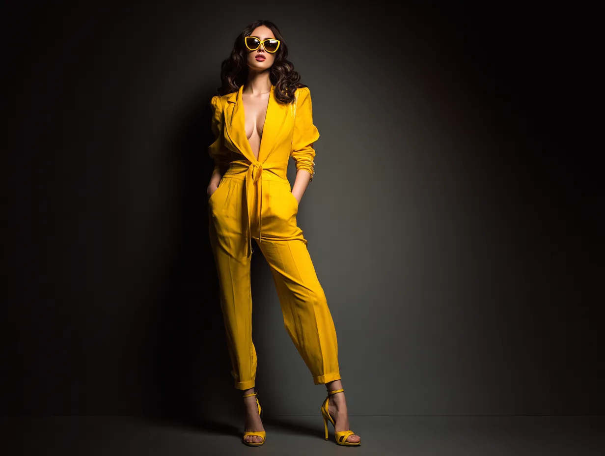 Jumpsuits were a significant trend in the 70s, and a yellow jumpsuit can bring a fresh and lively touch to your everyday style. Picture a casual yellow jumpsuit with wide-leg pants and a cinched waist, embodying the practicality and flair of 70s fashion. This piece is perfect for a day in the city, offering both comfort and style.